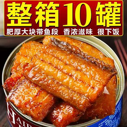 五香带鱼罐头即食罐装红烧刀鱼中段整箱香辣海鲜熟食黄花鱼下饭菜