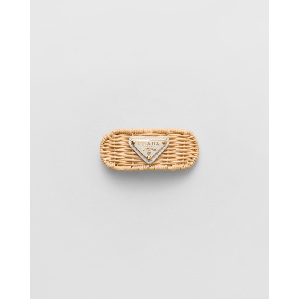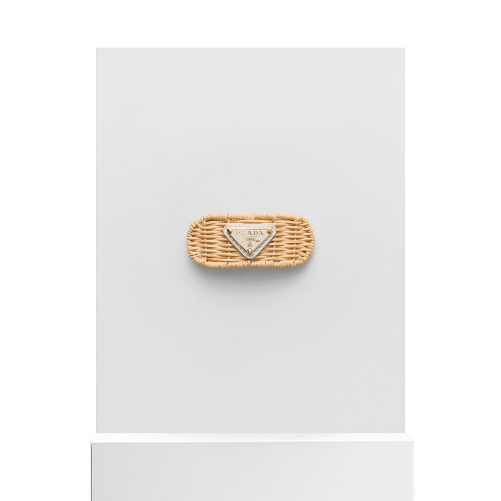 自营欧洲直邮Prada普拉达 女士黄褐色/白色羔羊皮金属三角标识发