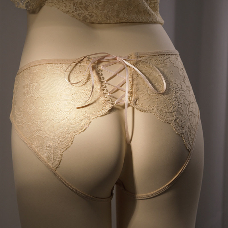 女假阴蕾丝系带臀部后开裆内裤CDTS变装男娘下体隐藏JJ伪娘三角裤