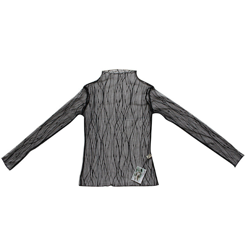 黑色通勤性感纱衣薄纱套头长袖内搭透视镂空蕾丝网纱上衣打底衫女