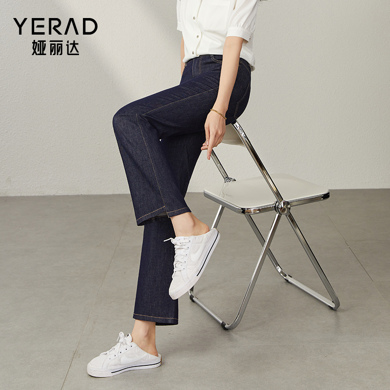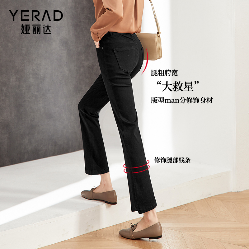 娅丽达微喇裤九分裤棉弹牛仔高腰