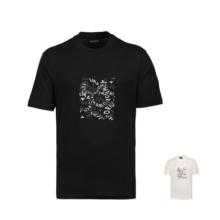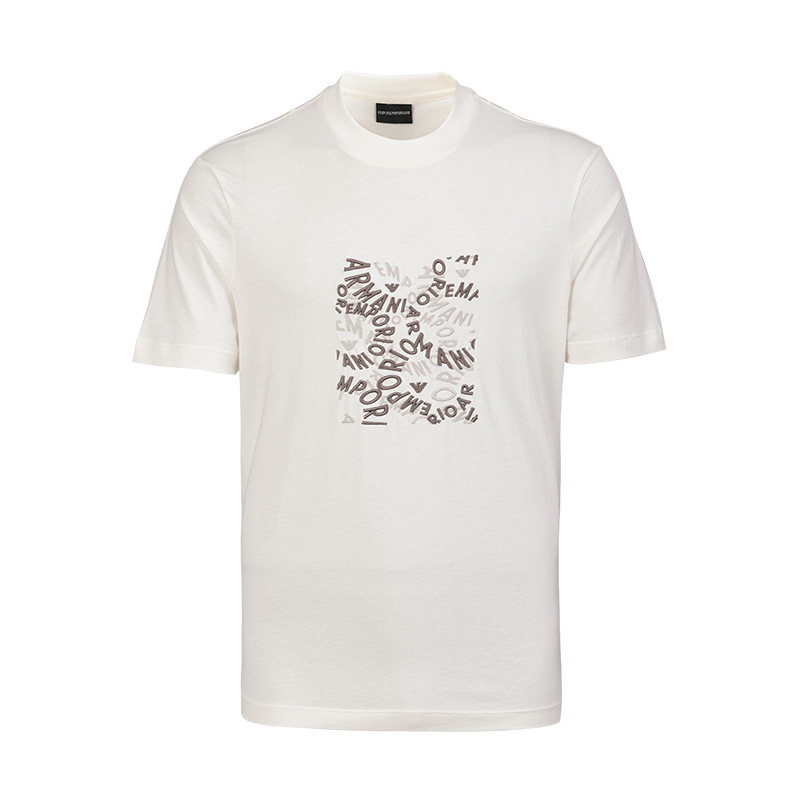 Armani/阿玛尼2025新款夏季全棉体恤男士logo刺绣印花纯棉短袖T恤