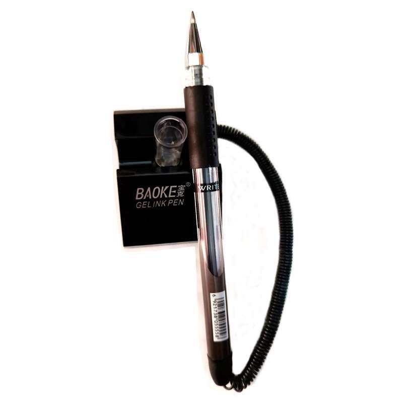 宝克中性台笔 办公桌面固定签字笔 柜台前台碳素笔粘笔带绳黑水笔