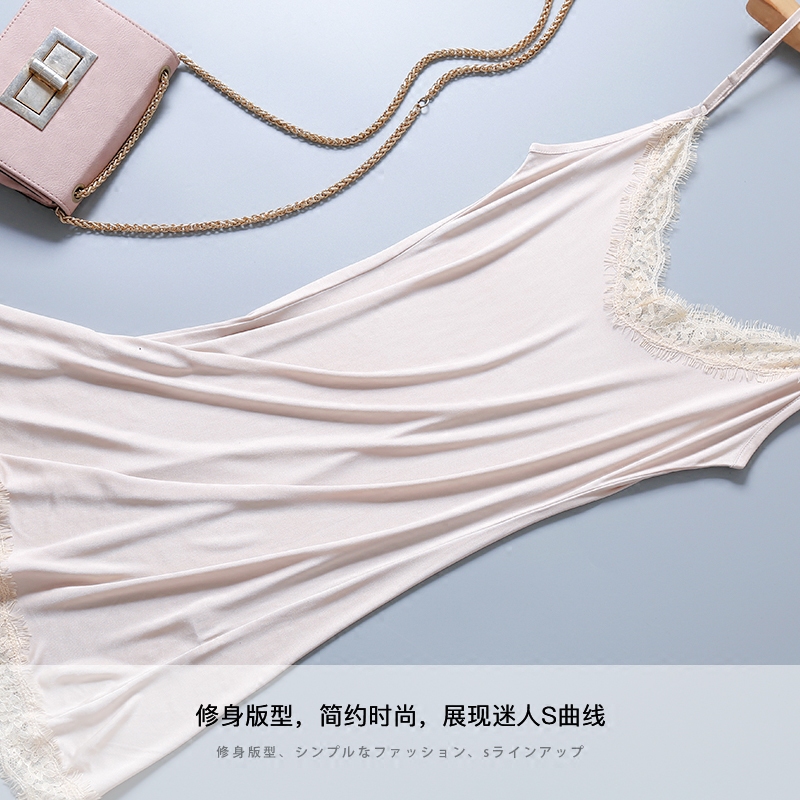 春夏吊带背心真丝针织性感V领蕾丝边中长款打底裙睡裙百搭内衬裙