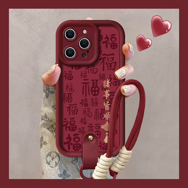 适用苹果16手机壳15新款14plus诸事平安14高级13散热12专用硅胶11promax全包iphonexr防摔带挂绳女7保护套6s