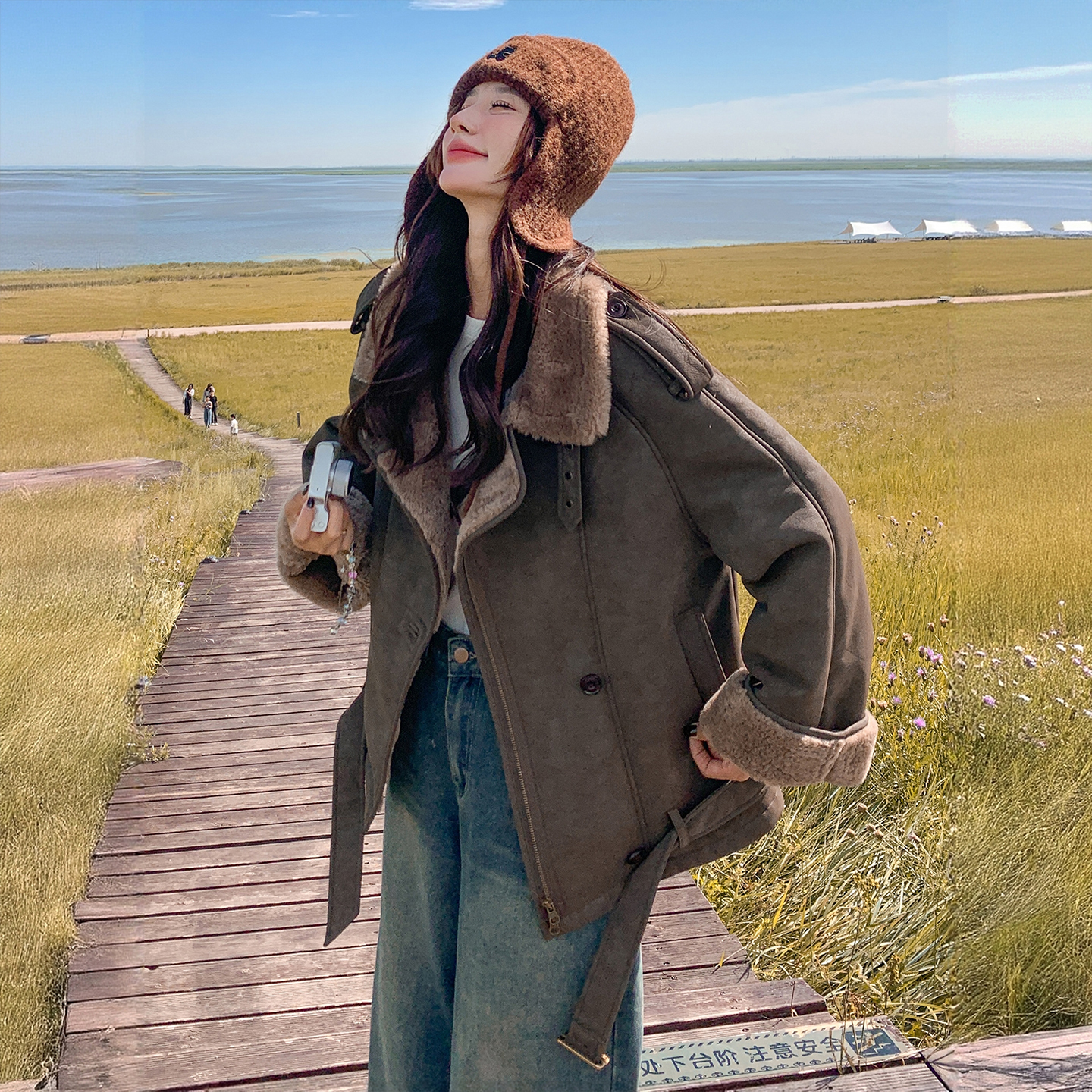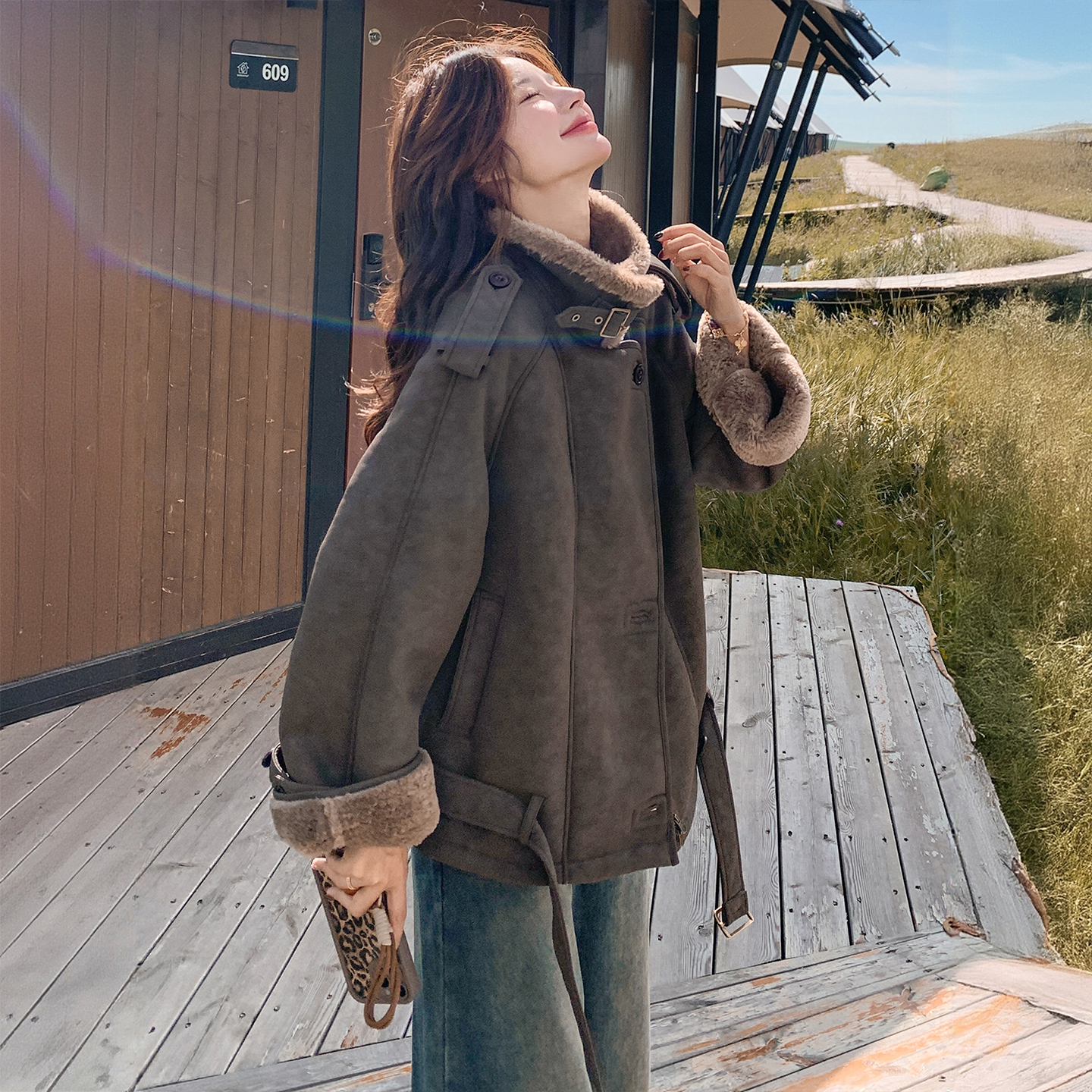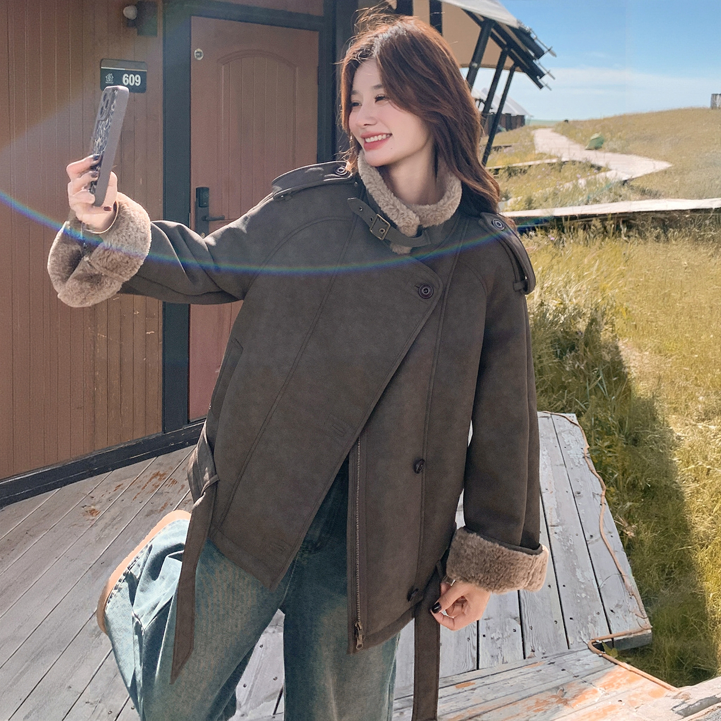 300斤特大码加绒加厚立领棉服女胖mm咖色宽松高级感保暖棉衣外套