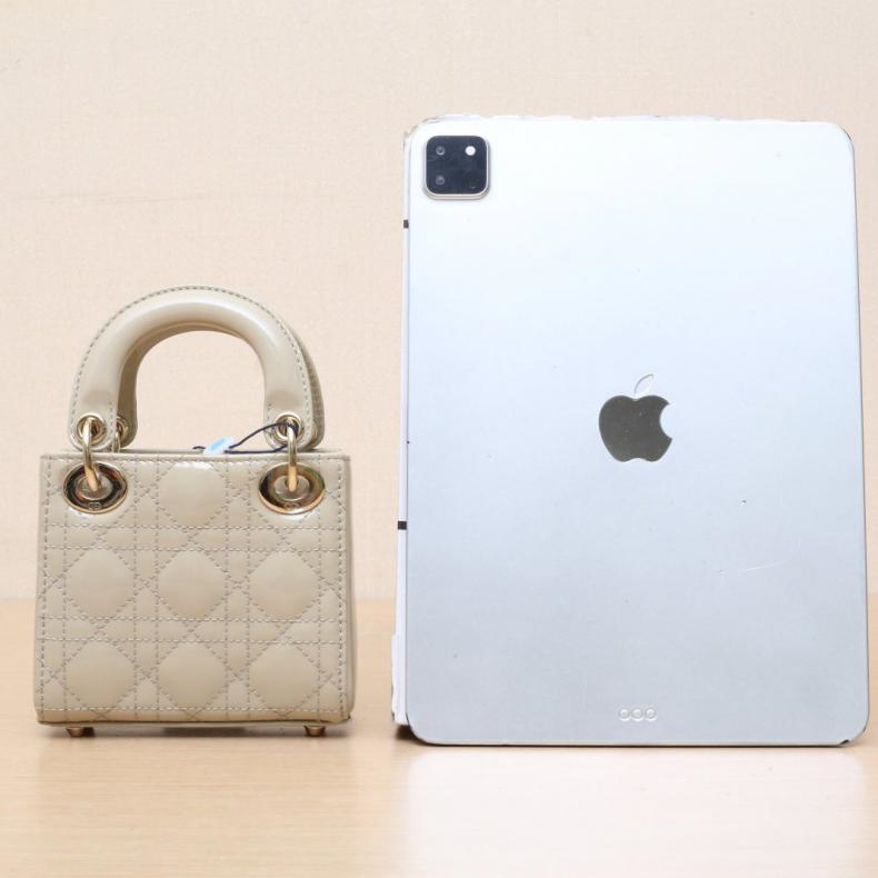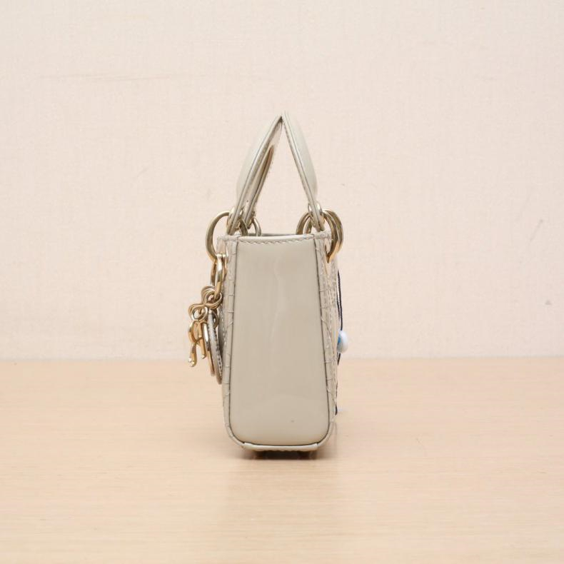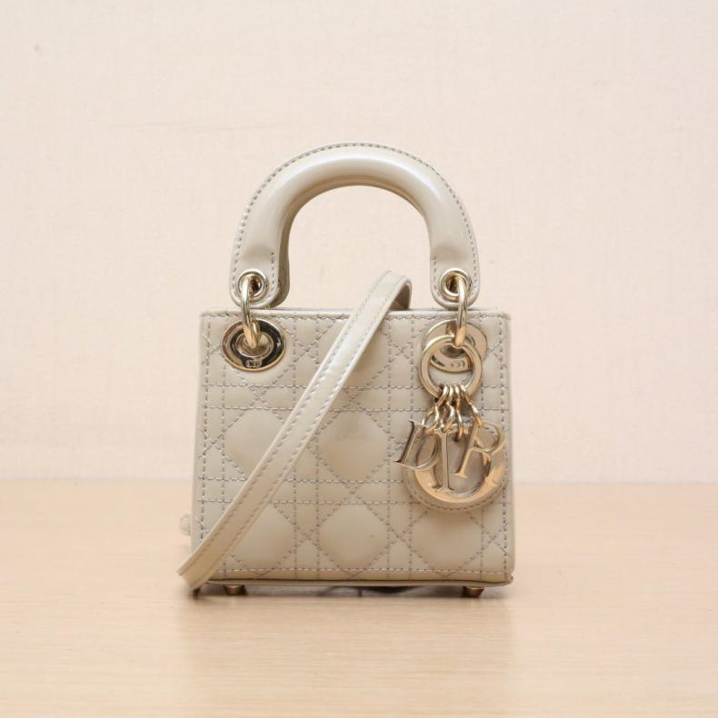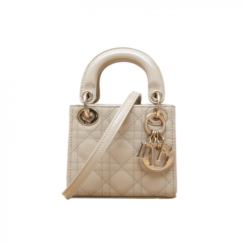 【自营】中古95新Dior/迪奥单肩包戴妃包超迷你12沙色漆皮