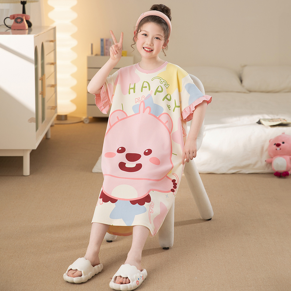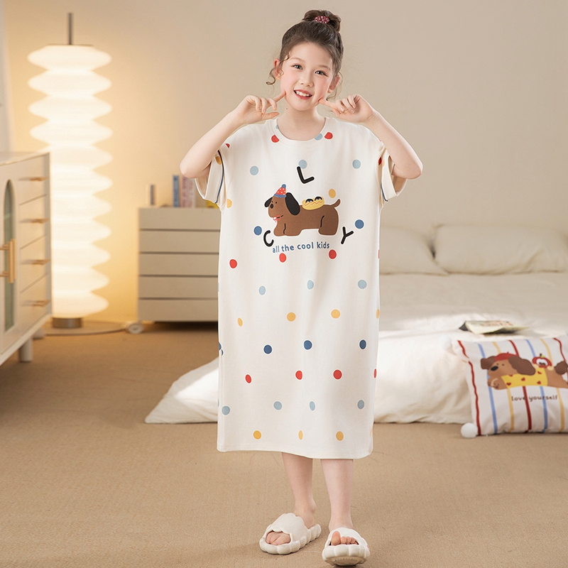 2025夏季女童睡裙薄款短袖睡衣纯棉中大童腊肠狗儿童宝宝家居服