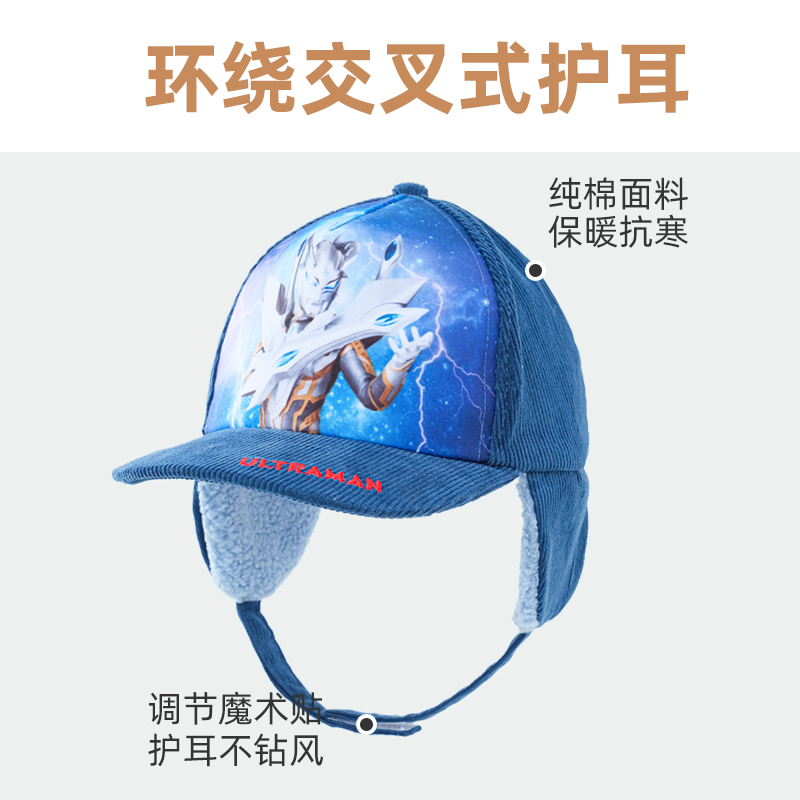 奥特曼儿童雷锋帽加绒加厚护耳帽子男孩卡通冬季男童毛绒保暖帽子