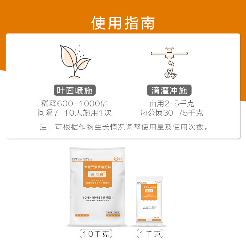 大量元素水溶肥料高钾型杜高钾肥膨果增甜苹果哈密瓜柑橘葡萄通用