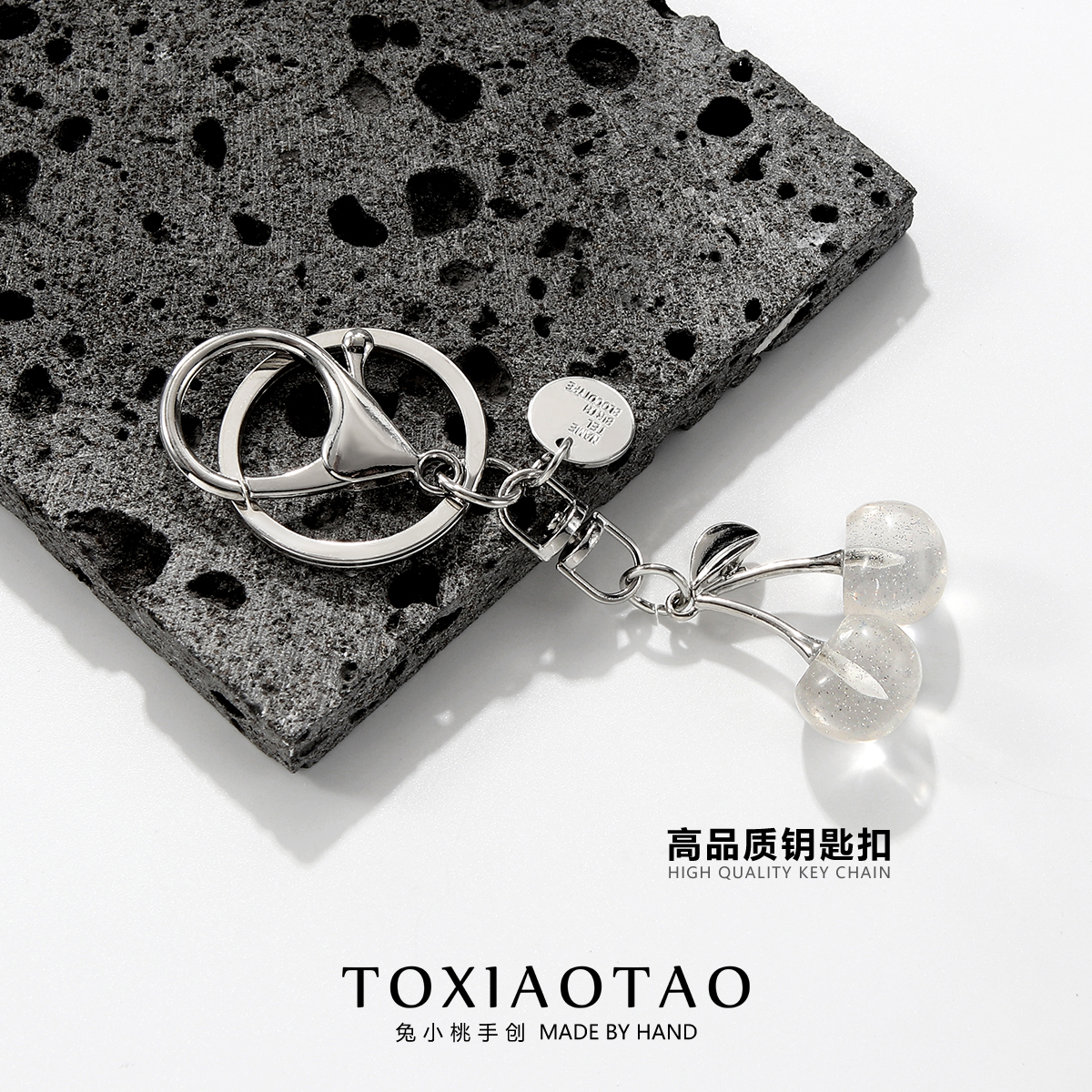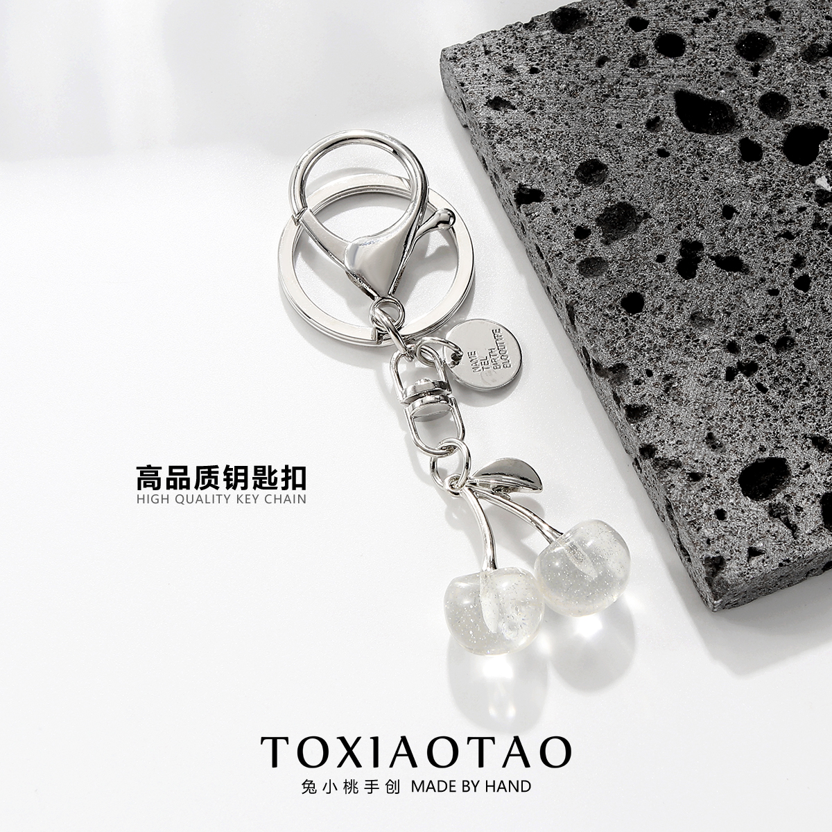 高级感水晶透明樱桃钥匙扣ins潮轻奢精致包包女挂件个性百搭挂饰