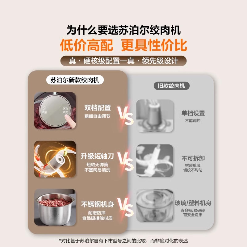 苏泊尔绞肉机家用2025新款全自动多功能不锈钢电动料理机碎肉绞馅
