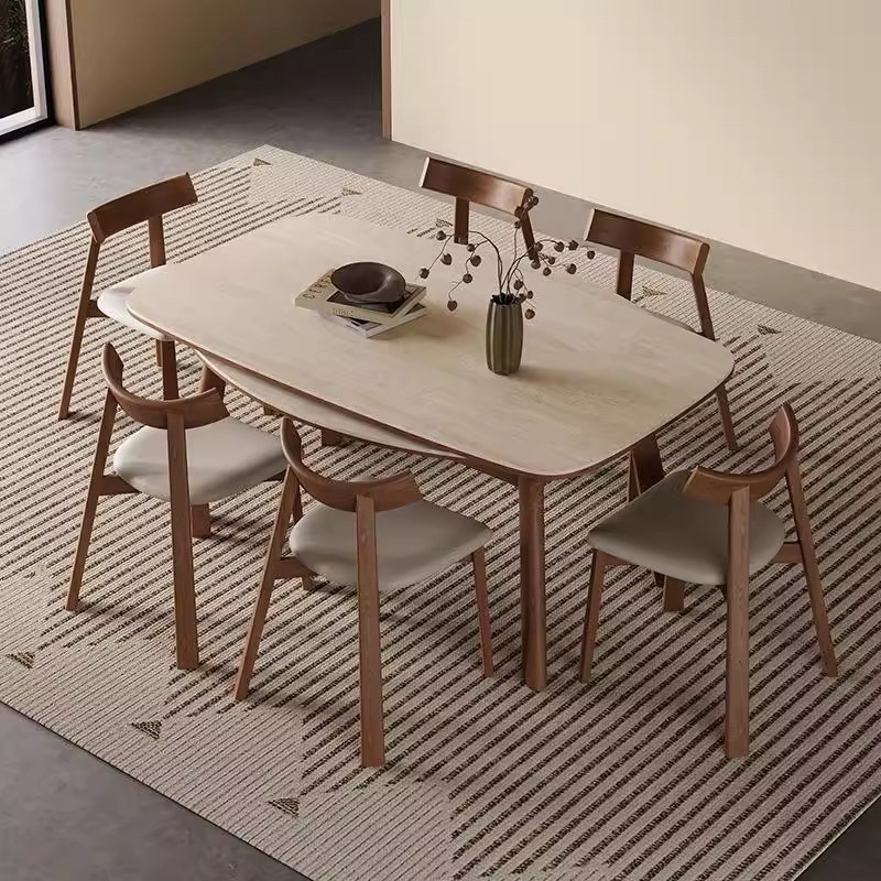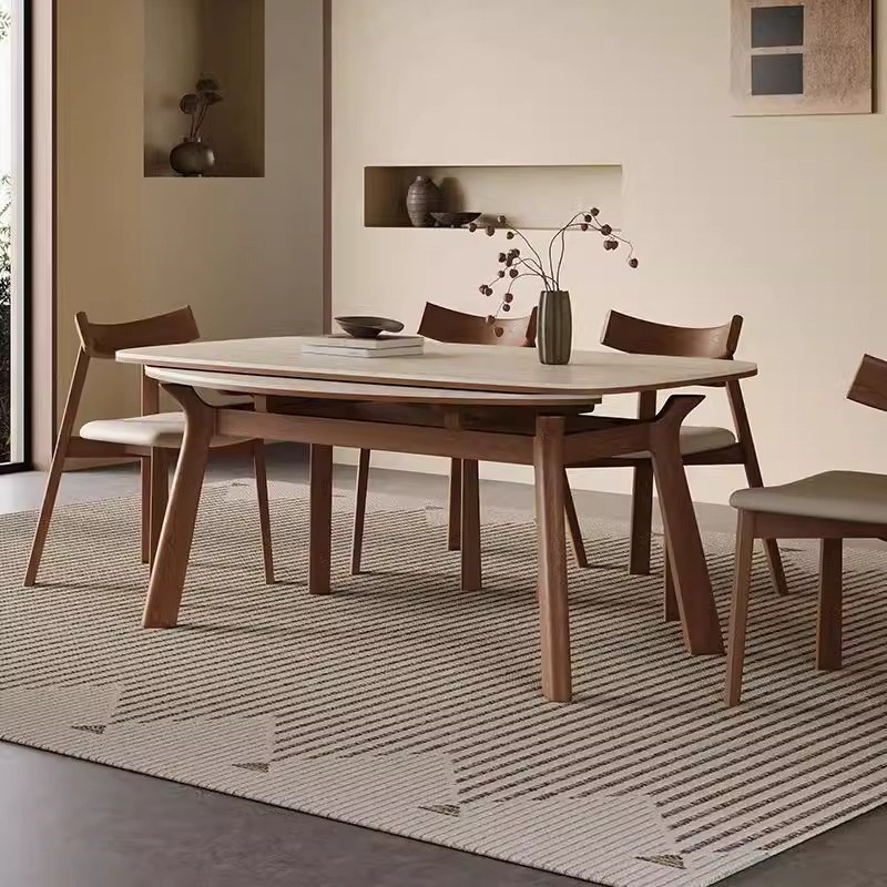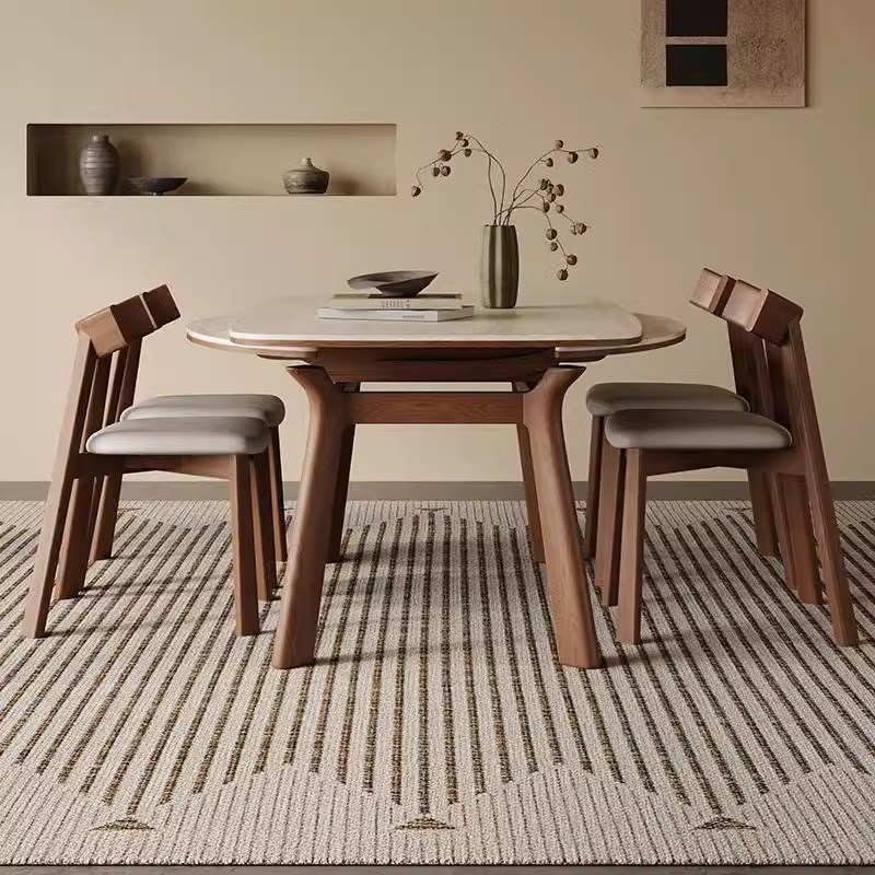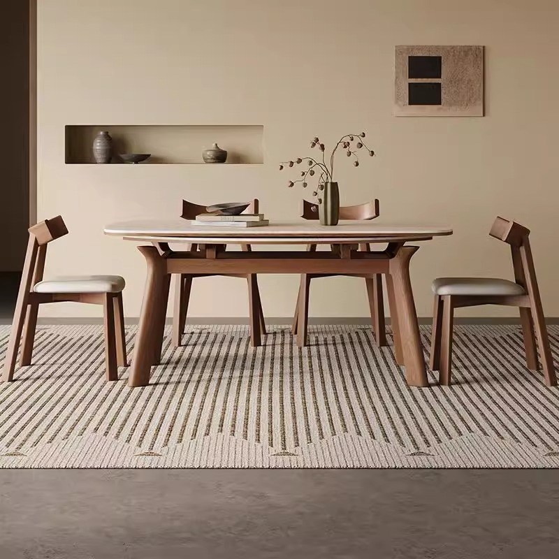 现代简约的方形和圆形两用古董风格设计师实木板岩餐桌和椅子