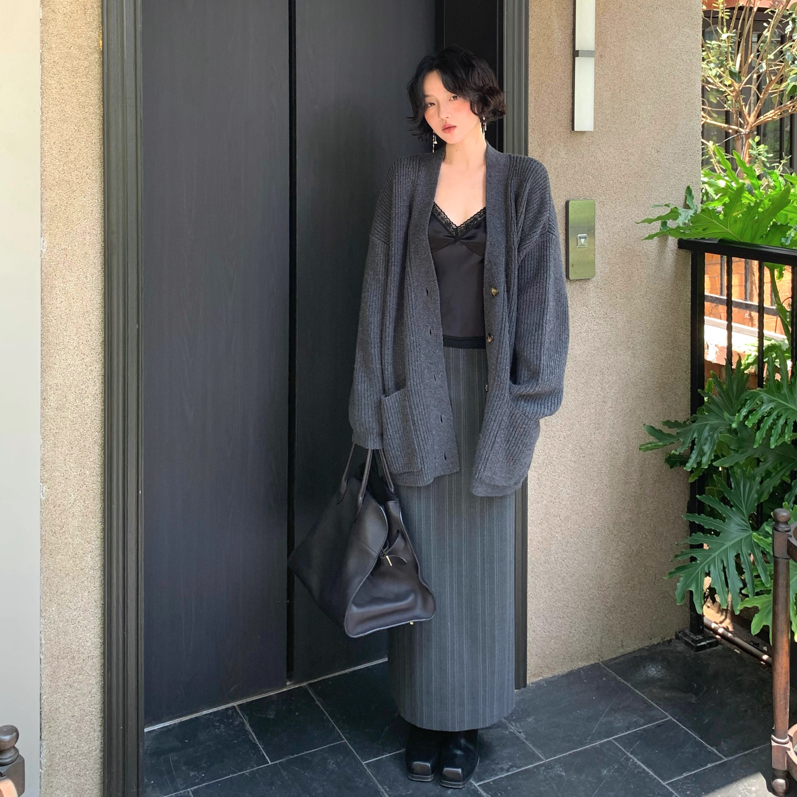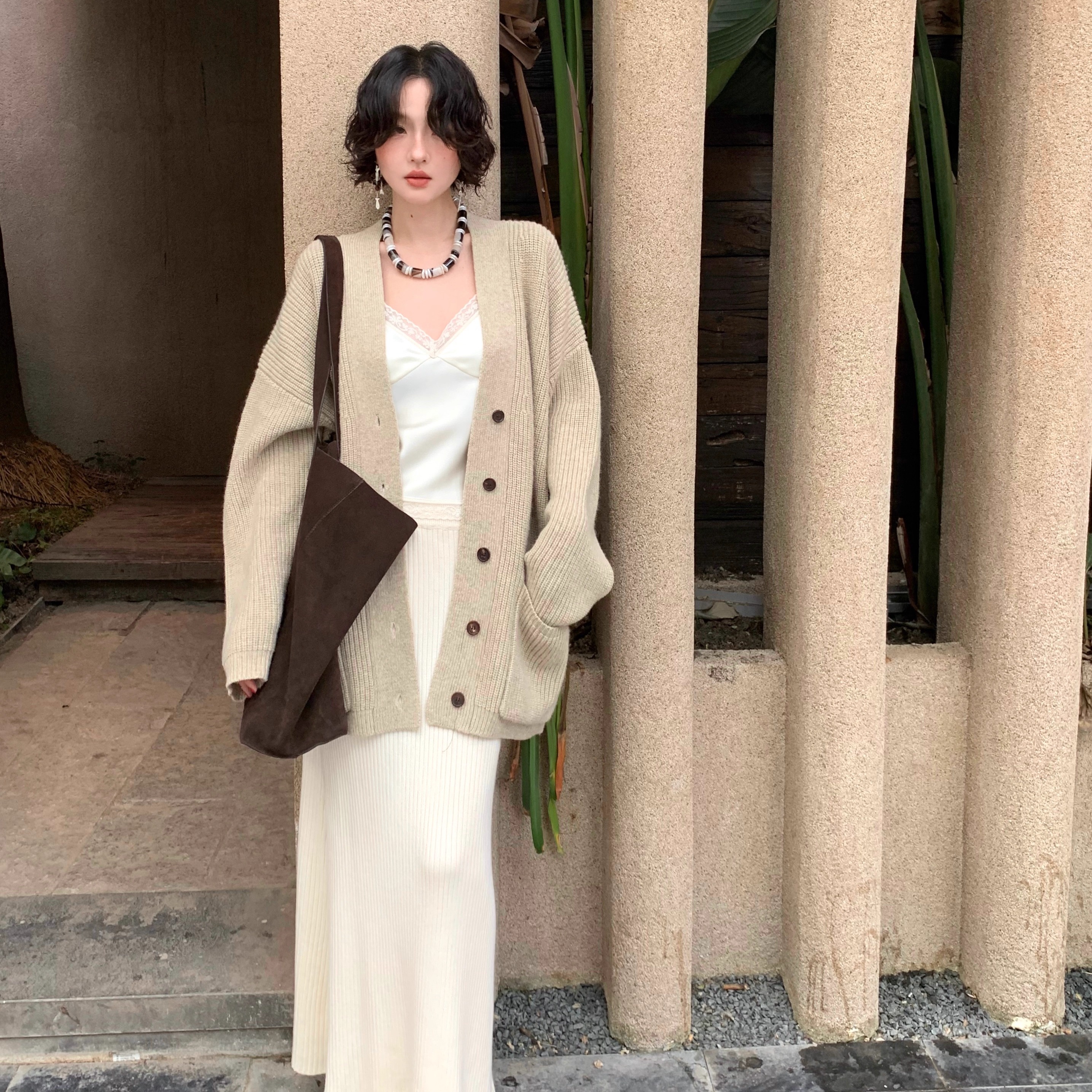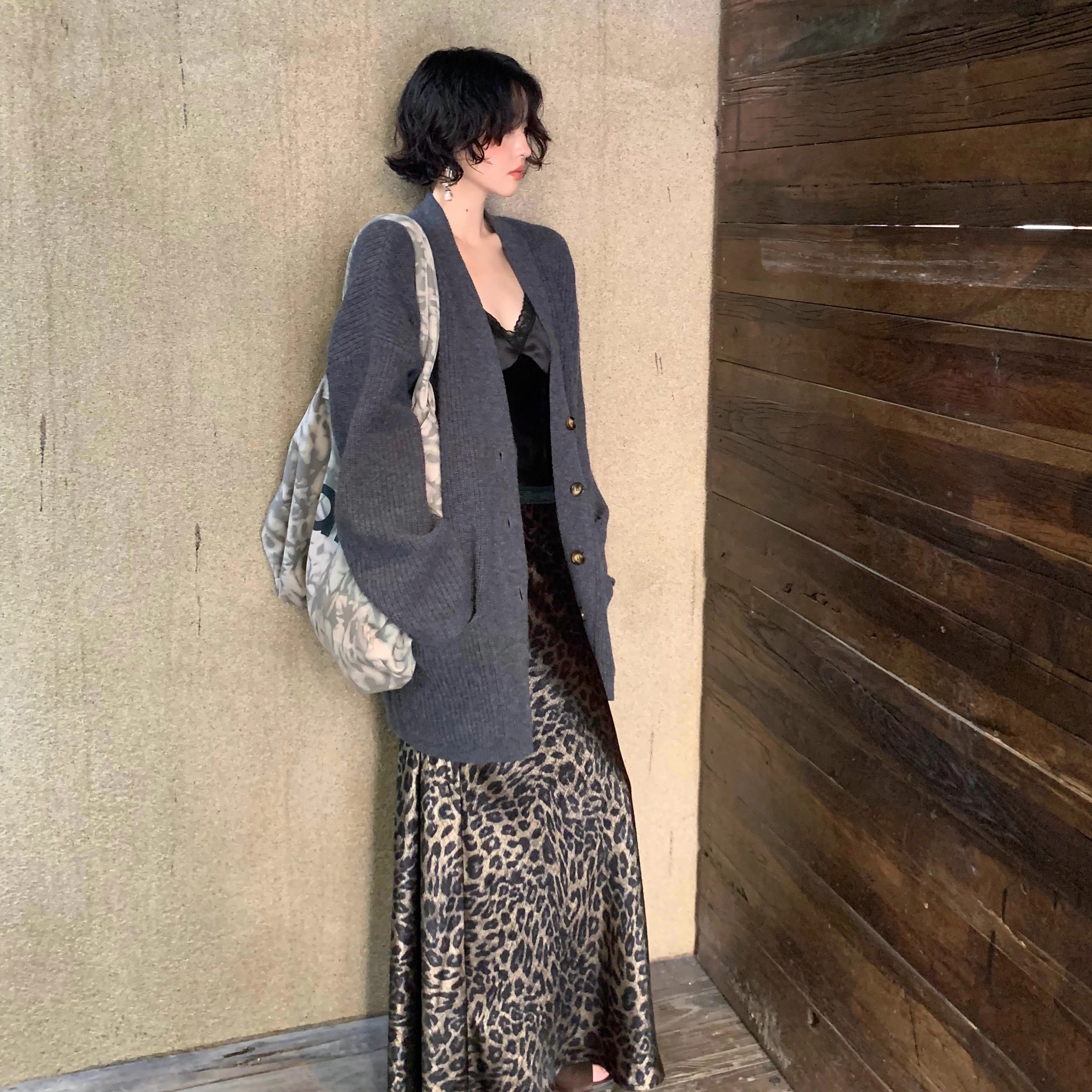 酒午自制【慵懒日光】港风复古秋季羊毛混纺针织开衫中长款外套女