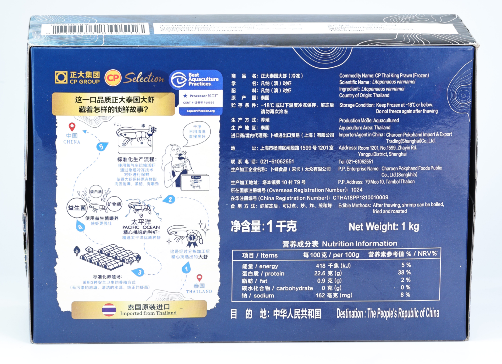 正大泰国进口大虾鲜活速冻大虾白对虾海鲜水产南美白对虾新鲜
