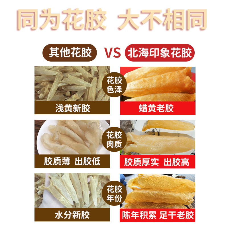 北海印象 8A正品花胶鱼胶干货100g深海鱼胶鱼肚鳔鱼泡买1斤拍5份