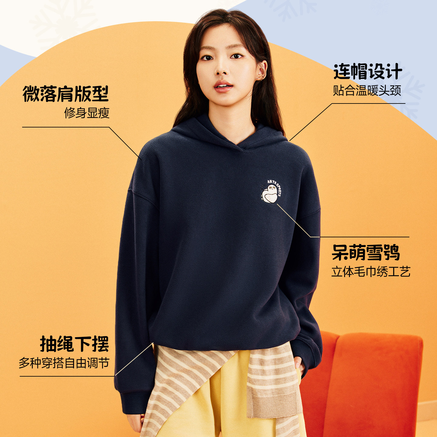 安踏雪鸮卫衣丨休闲摇粒绒套头衫女款冬季加绒宽松抓绒衣运动上衣