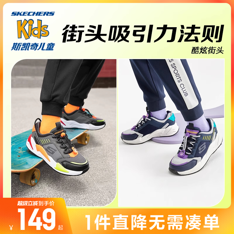 斯凯奇outlets儿童磁石扣板鞋个性秋冬时尚百搭舒适潮男童运动鞋