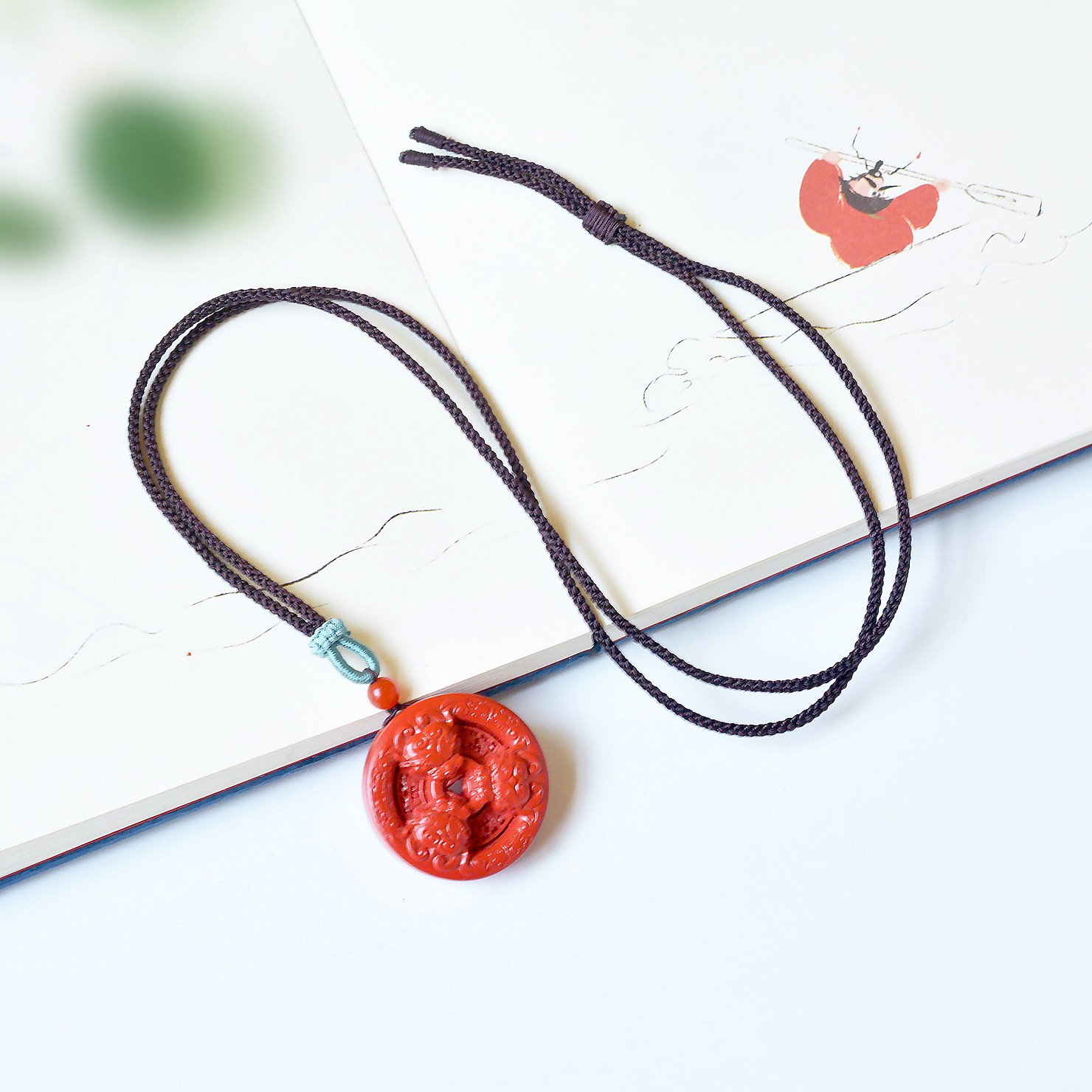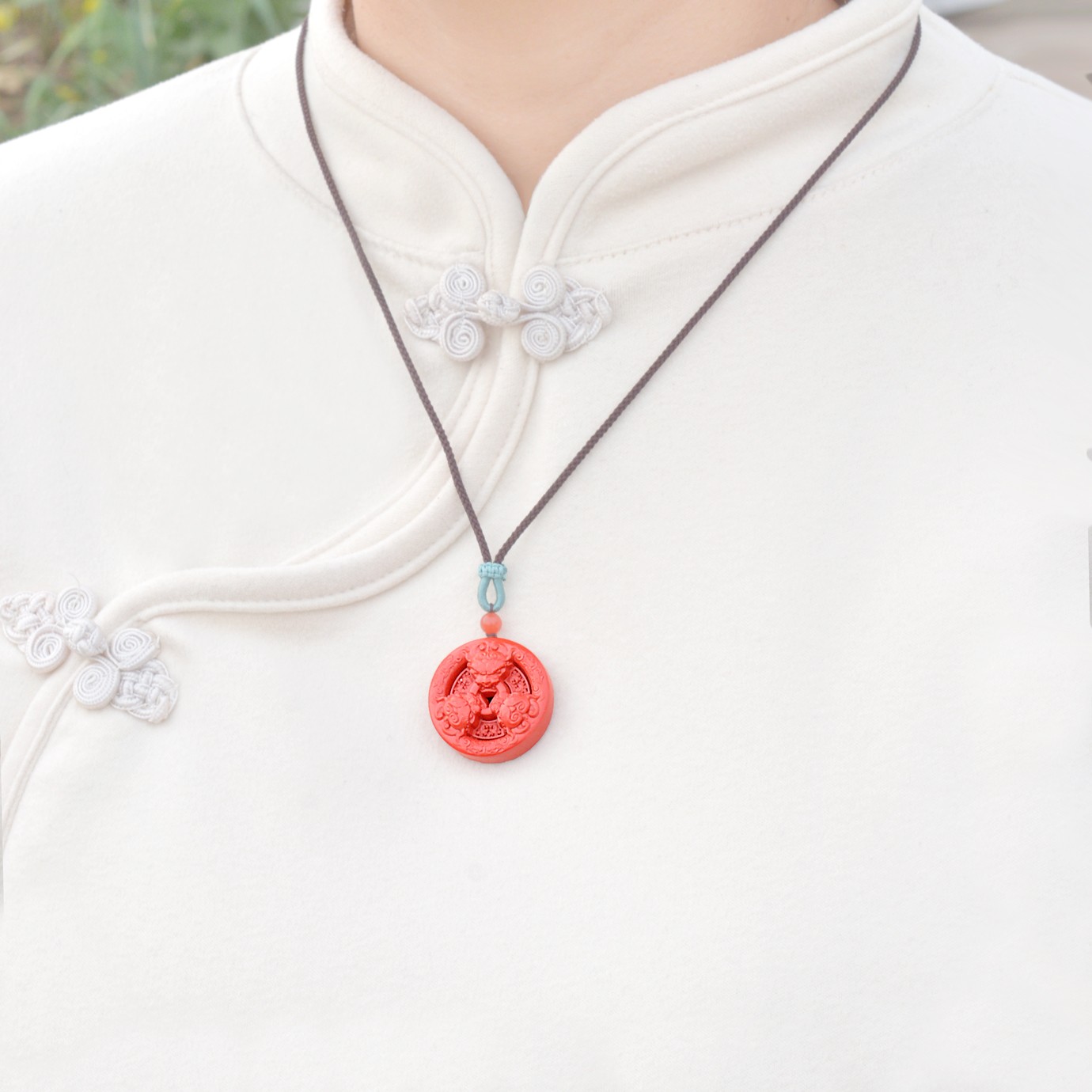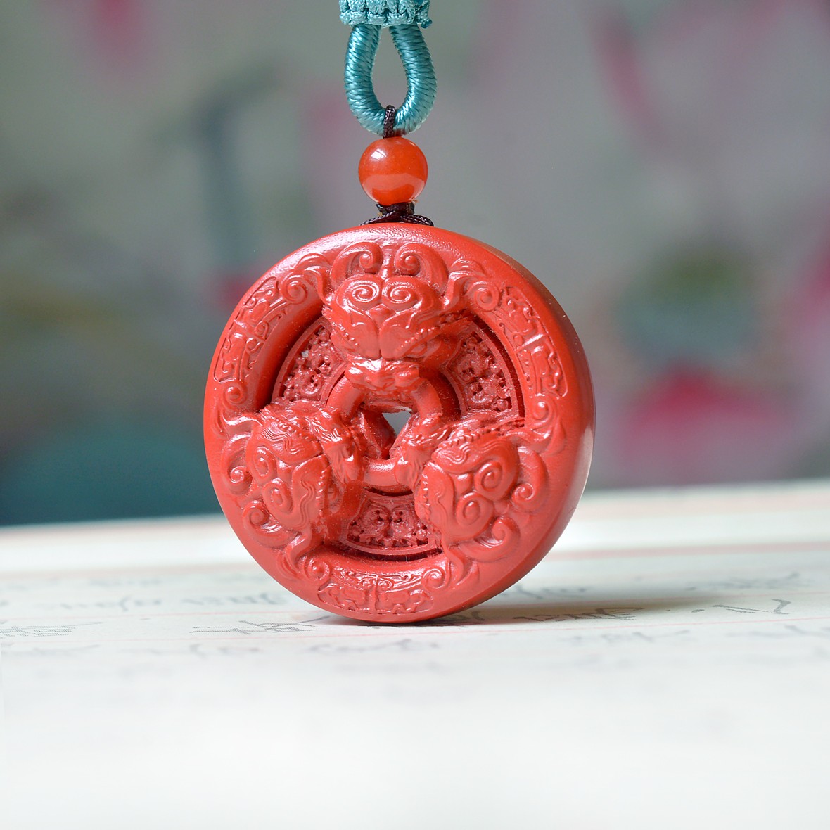 天然正品朱砂三兽图吊坠男女本命年红砂挂件百搭时尚毛衣项链礼物