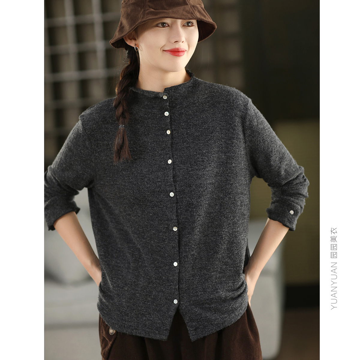 园园美衣秋款羊绒针织开衫上衣女文艺宽松显瘦单排扣长袖外搭外搭