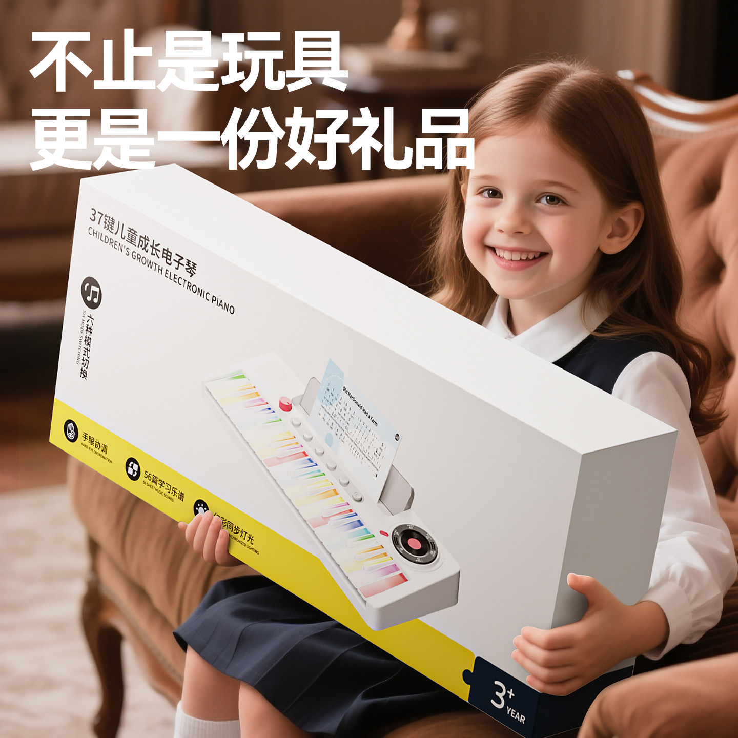 37键彩虹电子钢琴儿童初学入门可弹奏乐器小女孩周岁礼物玩具女童