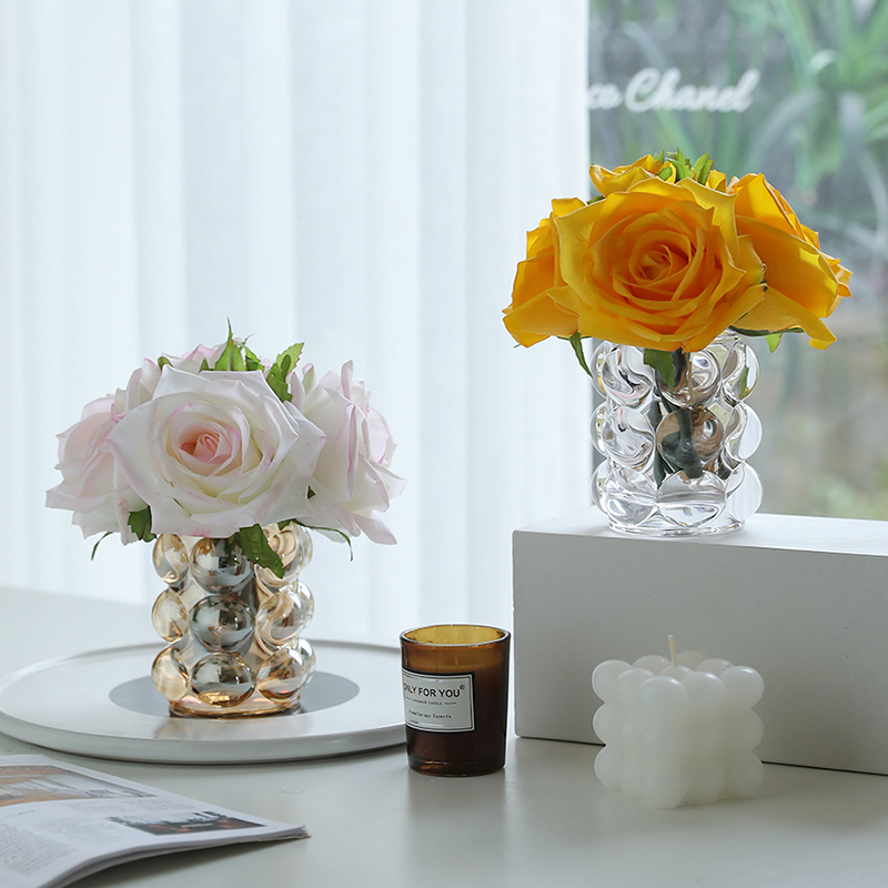 欧式手感保湿玫瑰花假花高品质餐桌花摆件茶几卫生间洗漱台装饰花