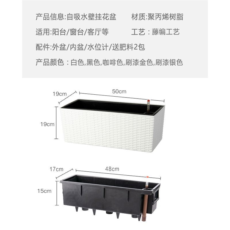 阳台花槽挂c栏杆花盆壁挂花园布置挂篮挂墙自吸水悬挂式长方形花