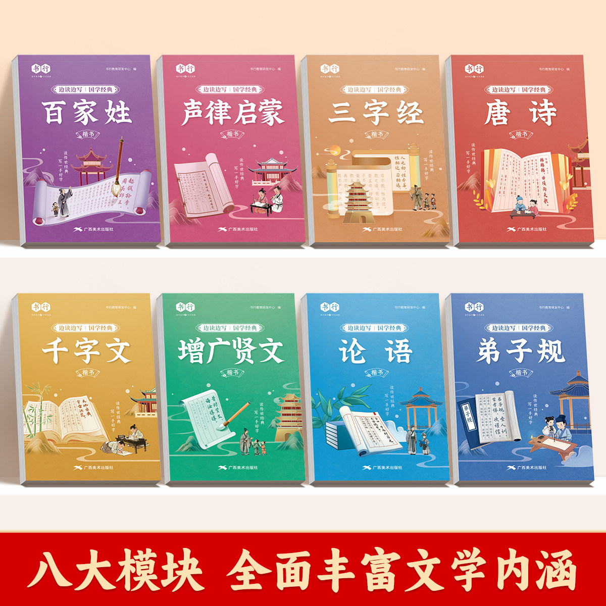书行国学经典启蒙练字帖小学生专用每日一练三字经弟子规百家姓论语千字文增广贤文声律启蒙唐诗练字本课外阅读书写硬笔楷书练字帖