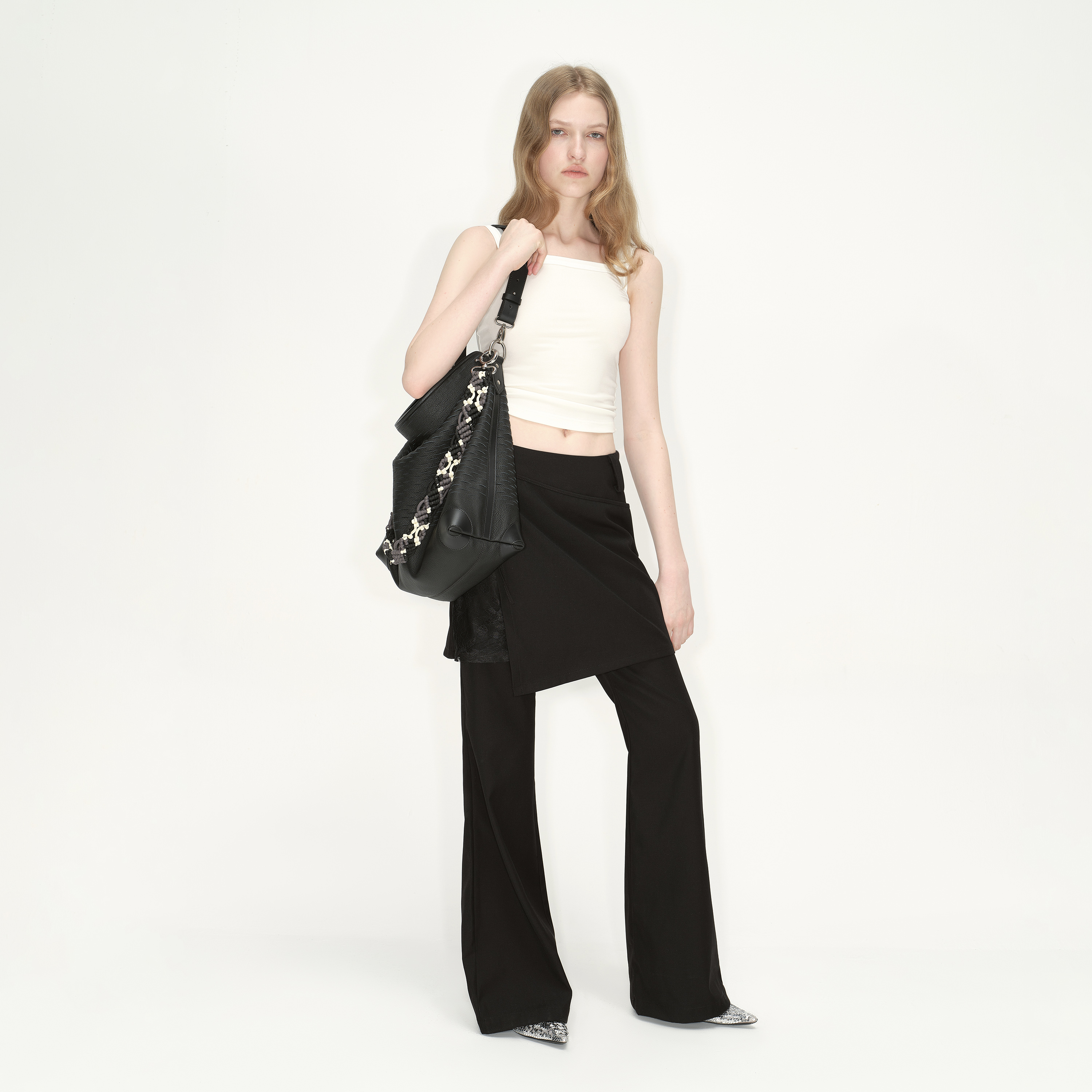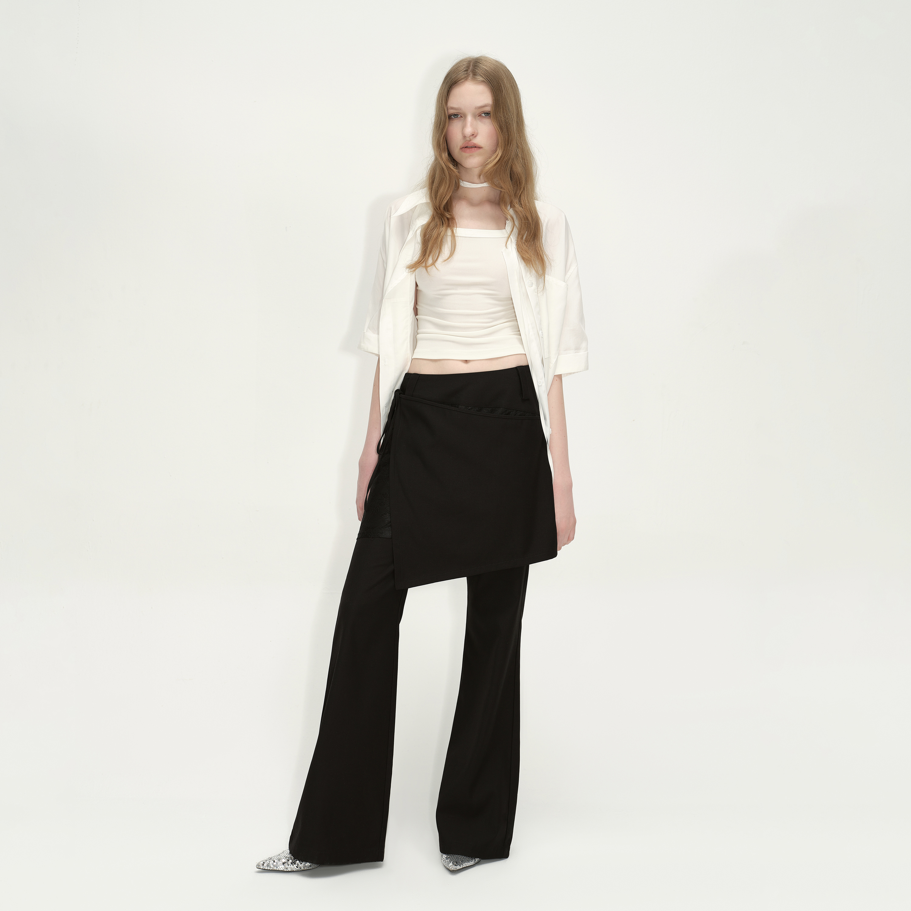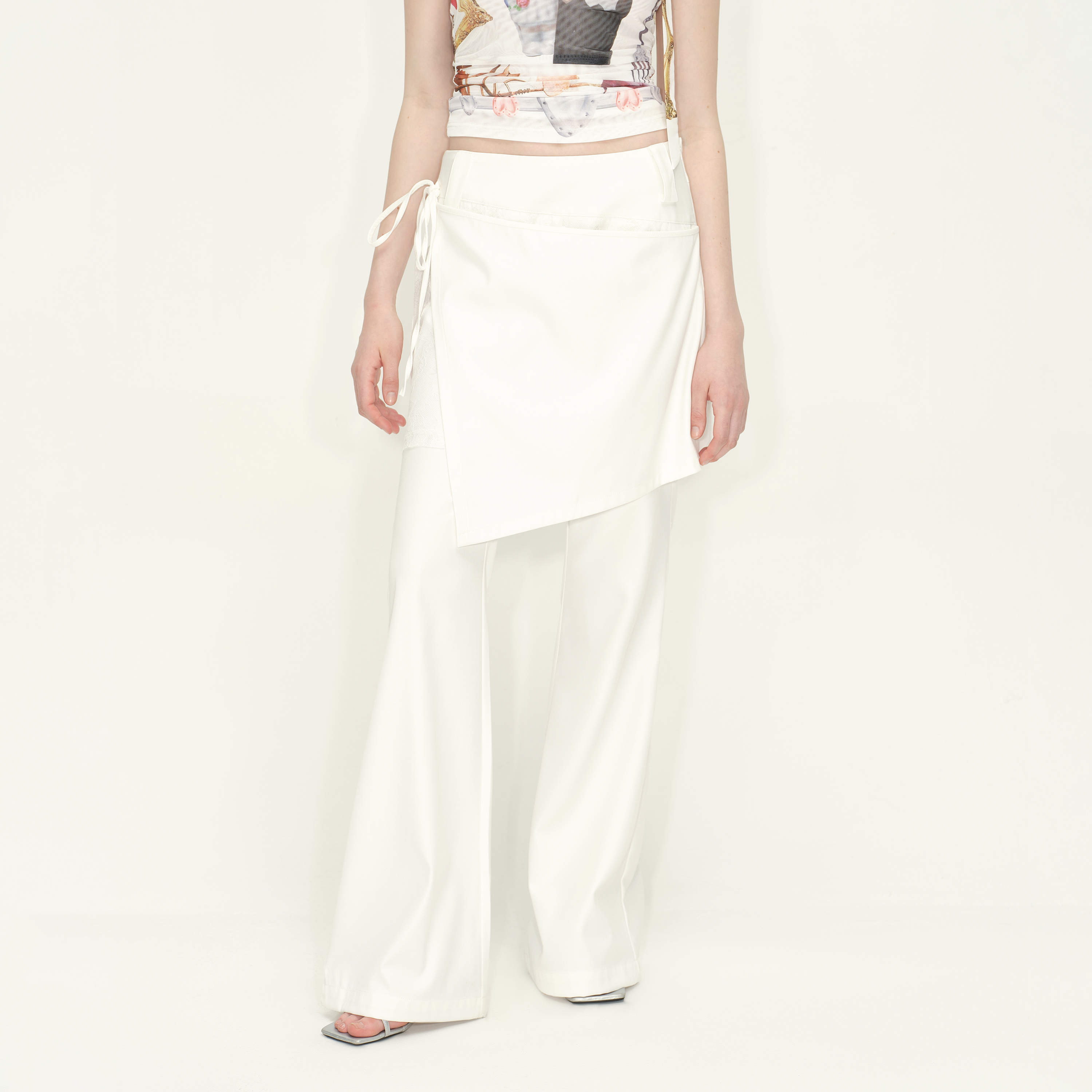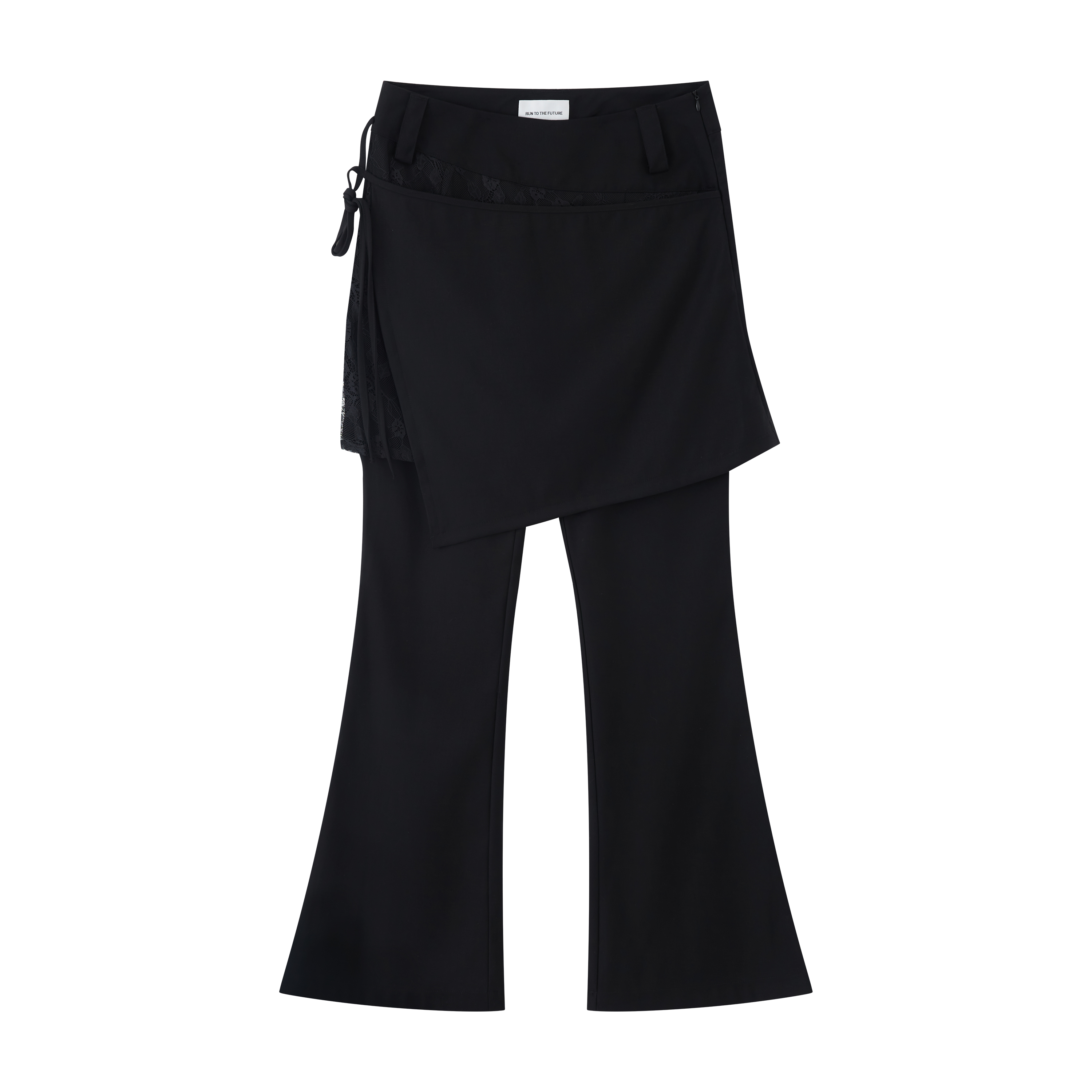 出逃赤岗西 蕾丝拼接假两件白色西装裙裤女秋设计感休闲喇叭裤子
