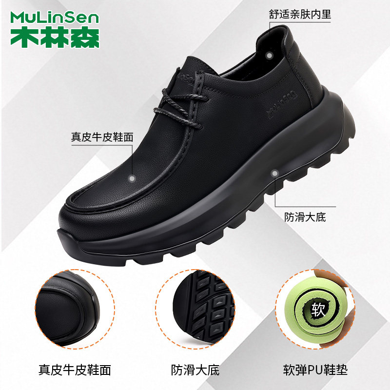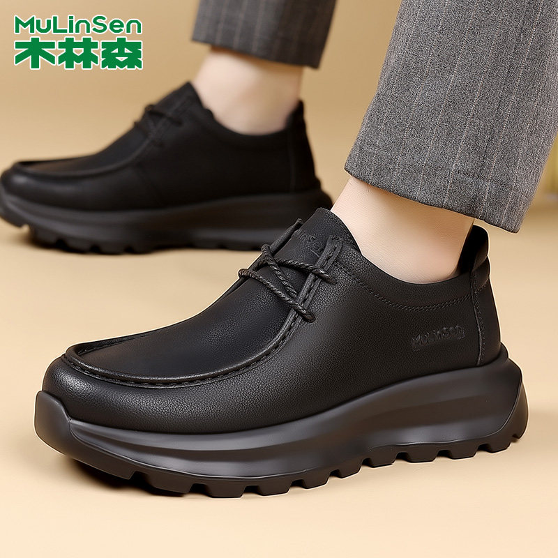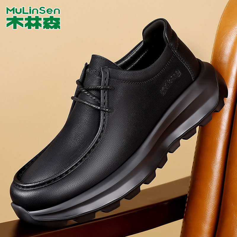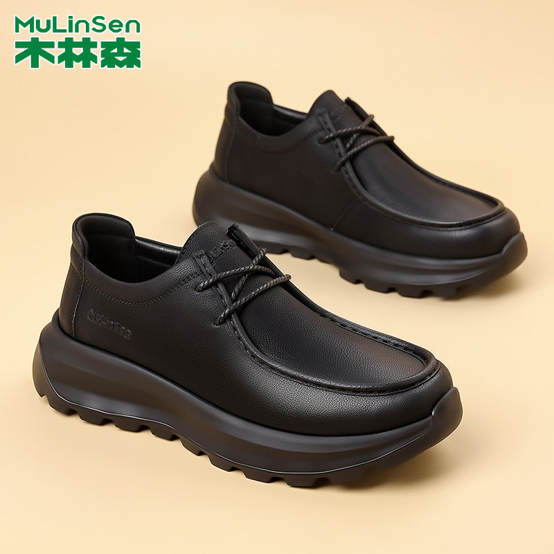 木林森男鞋2026春秋新款休闲皮鞋男士真皮厚底增高户外防滑男皮鞋