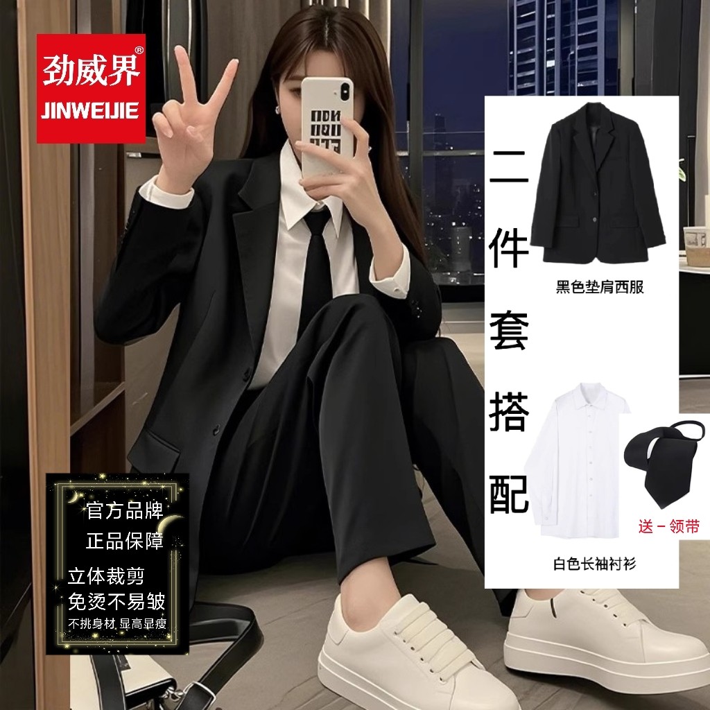 劲威界西装套装女春秋新款大学生答辩面试职业装西服学生会正装潮