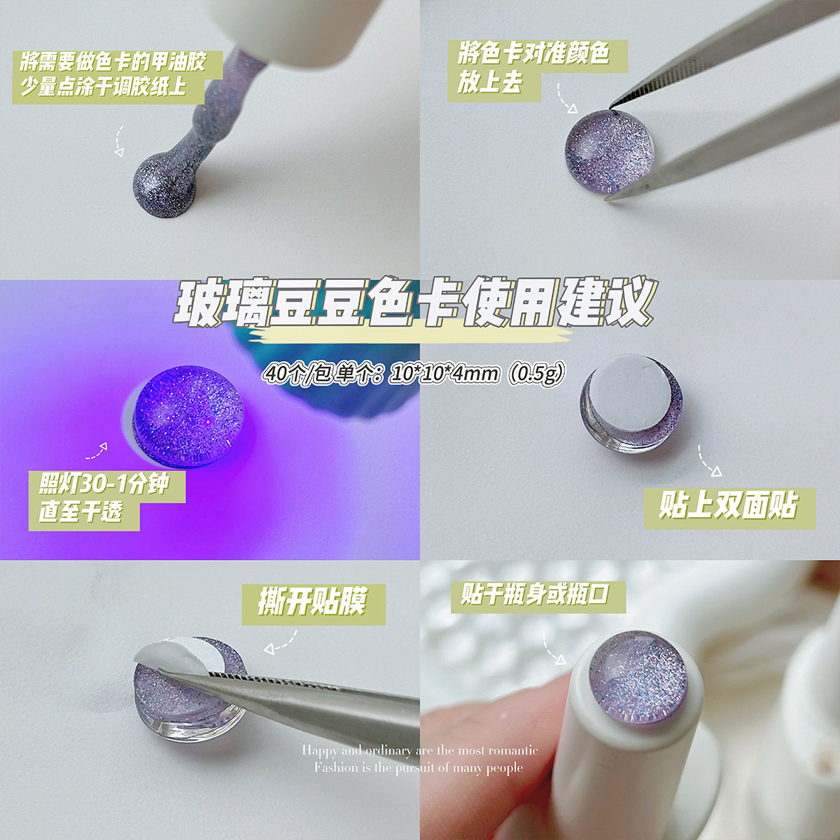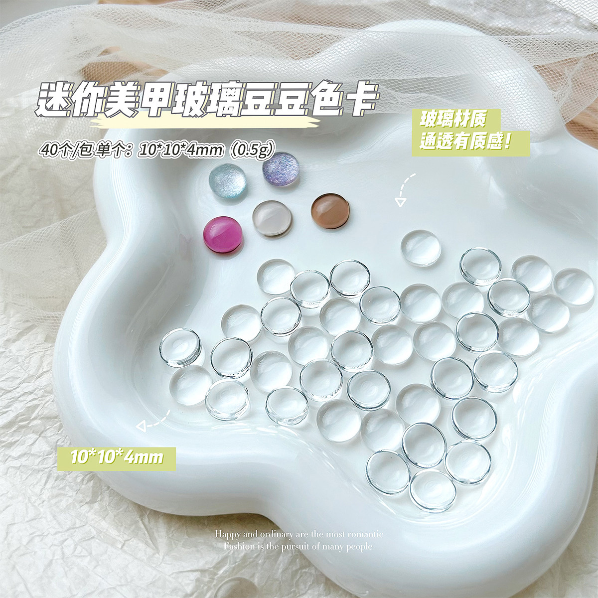 美甲迷你玻璃色卡美甲豆豆色卡打板甲片高透明3D圆形珠子美甲工具