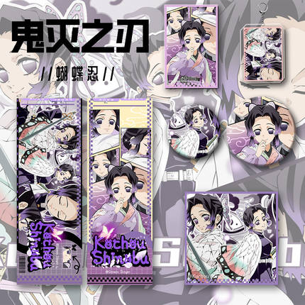 鬼灭之刃新款周边蝴蝶忍镭射卡吧唧徽章钥匙扣礼物包包挂件明信片