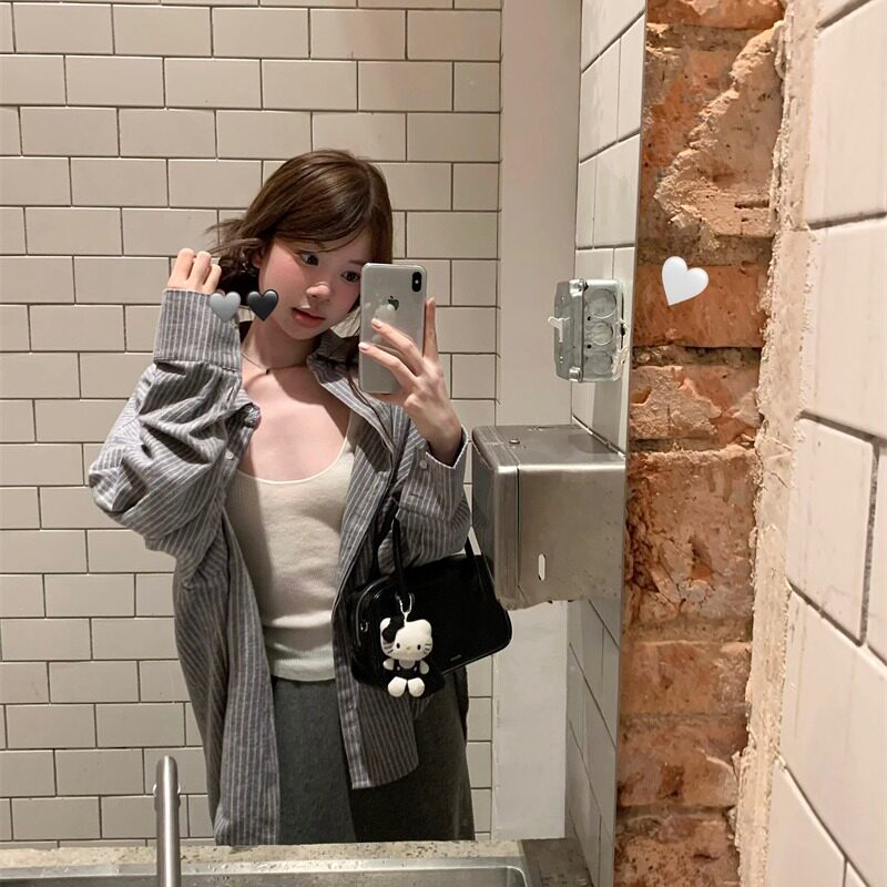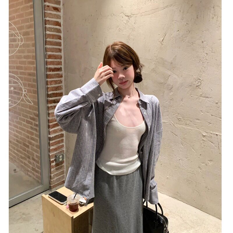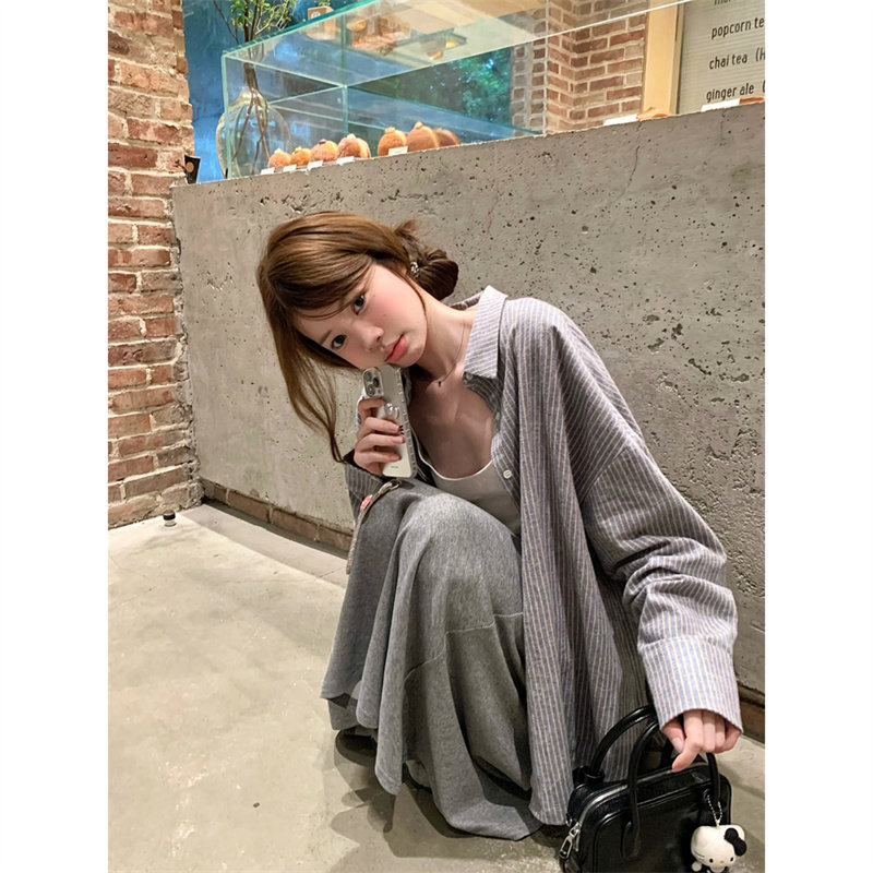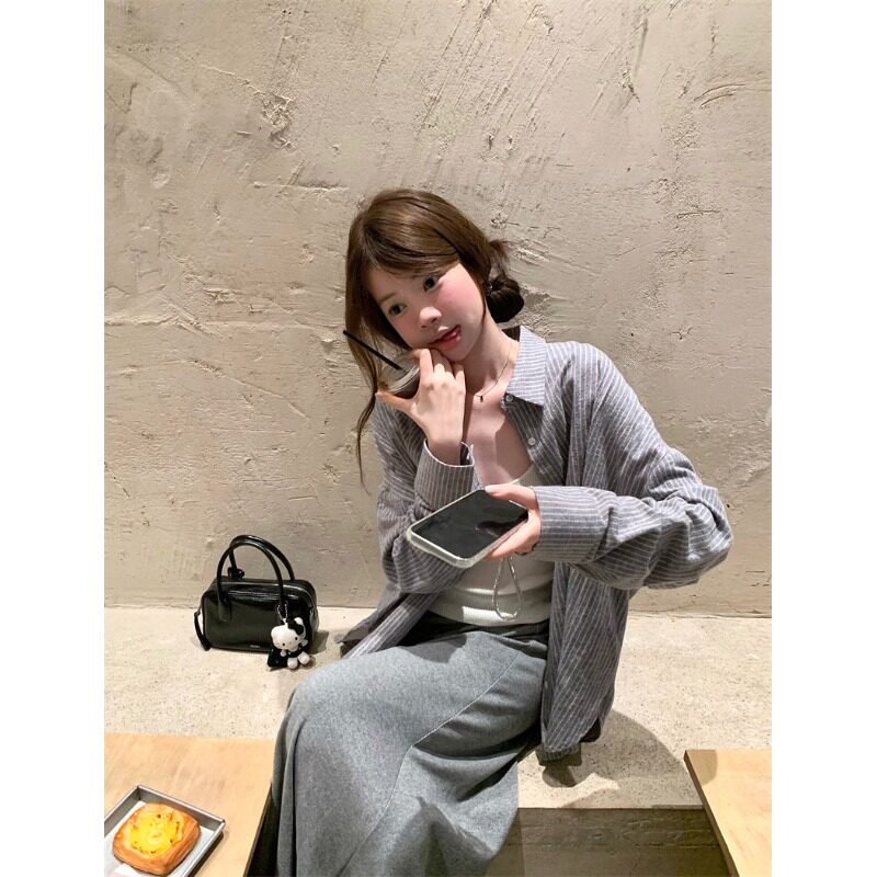 法式高级蓝色条纹衬衫女早春季新款休闲宽松气质慵懒风衬衣上衣