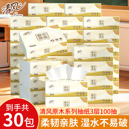 清风原木抽纸家用纸巾整箱家用实惠装餐巾纸软包纸卫生纸批发纸抽