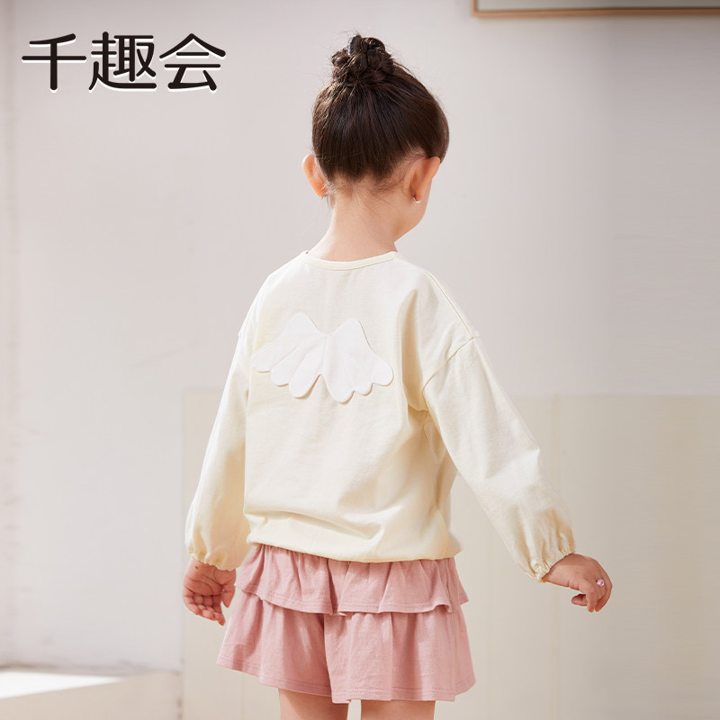 千趣会童装25春秋款后背天使翅膀T恤幼儿园宝宝可爱棉质套头衫