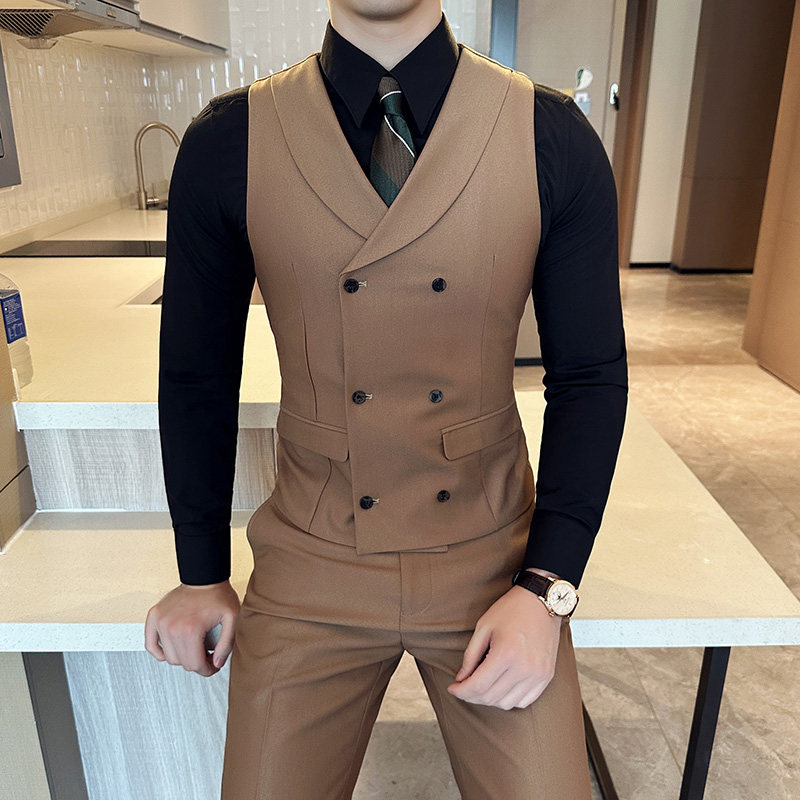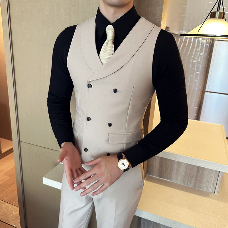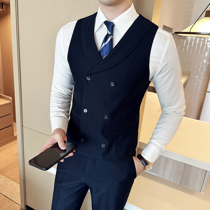青果领西装马甲套装男修身双排扣商务休闲背心西裤伴郎礼服两件套