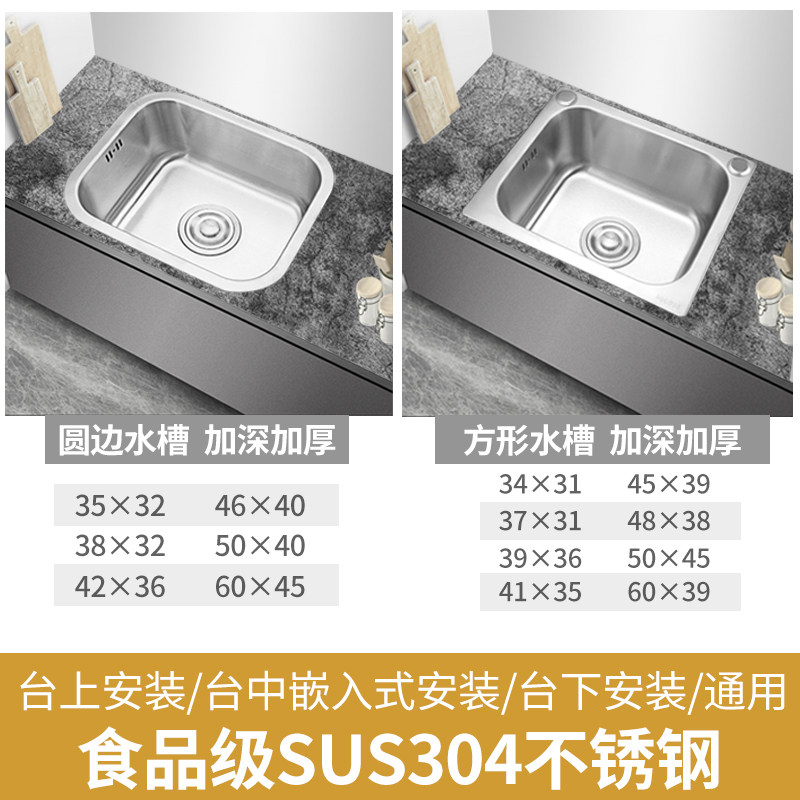 304不锈钢水槽单槽 加厚洗菜盆小号厨房洗菜盆碗池阳台洗衣盆台下