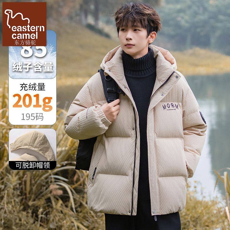 东方骆驼户外羽绒服男士2025冬季新款短款连帽百搭保暖时尚外套男