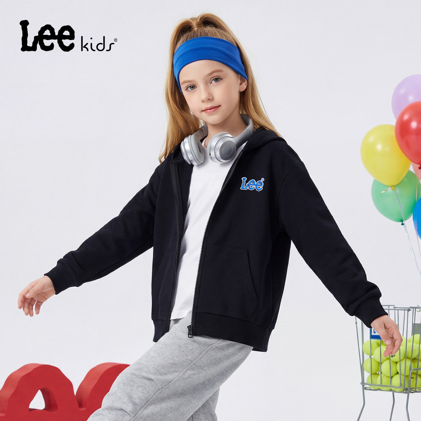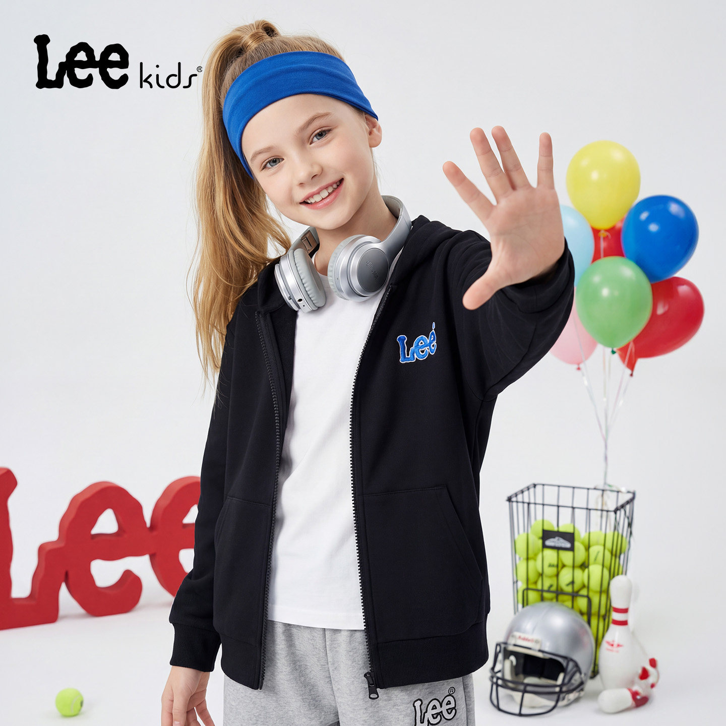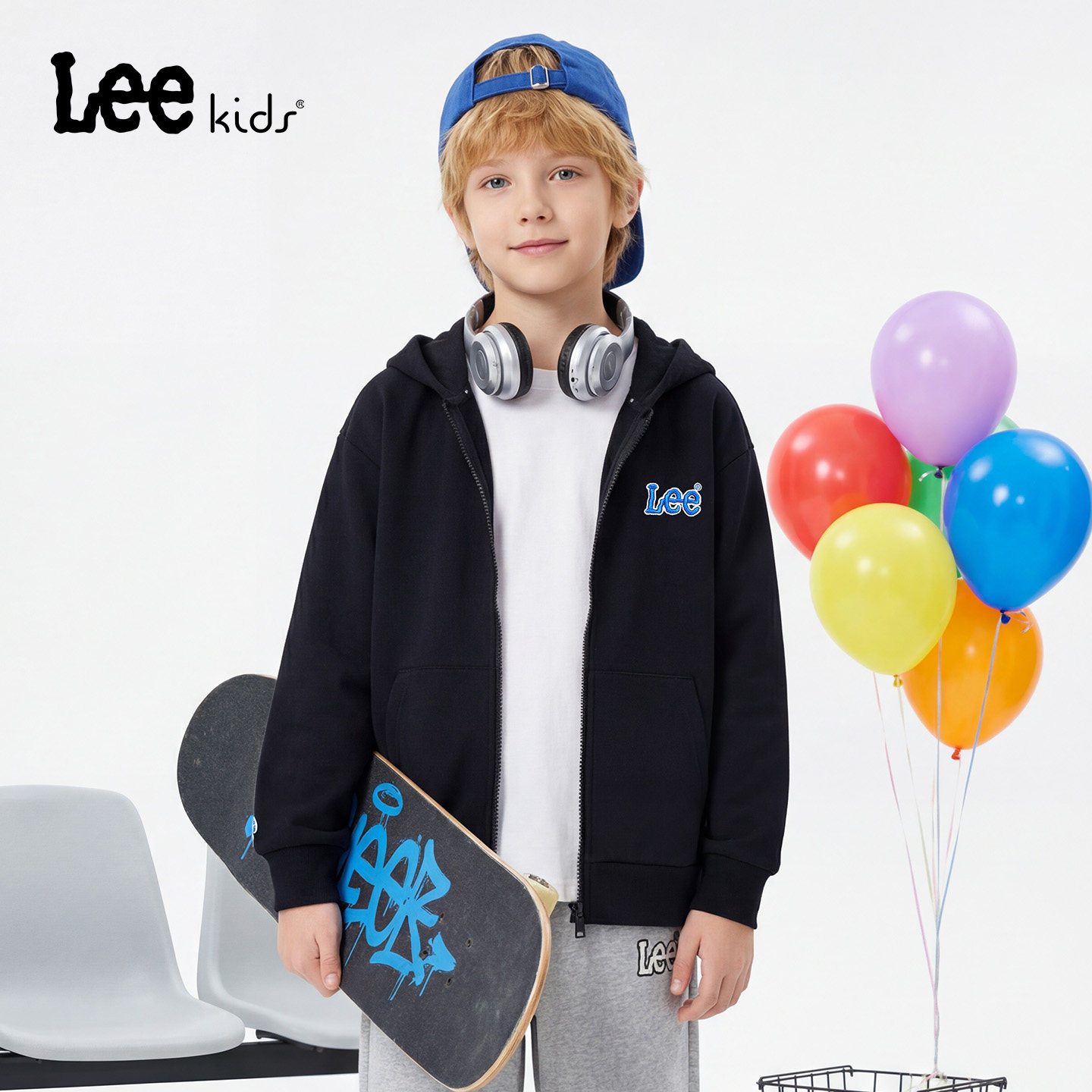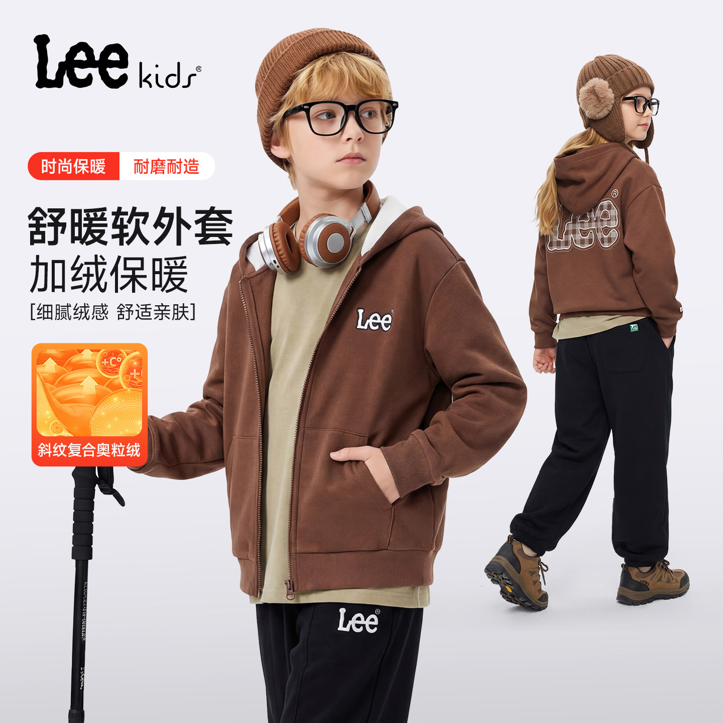 Lee kids儿童休闲连帽拉链外套秋冬新款男童加绒保暖宽松长袖上衣