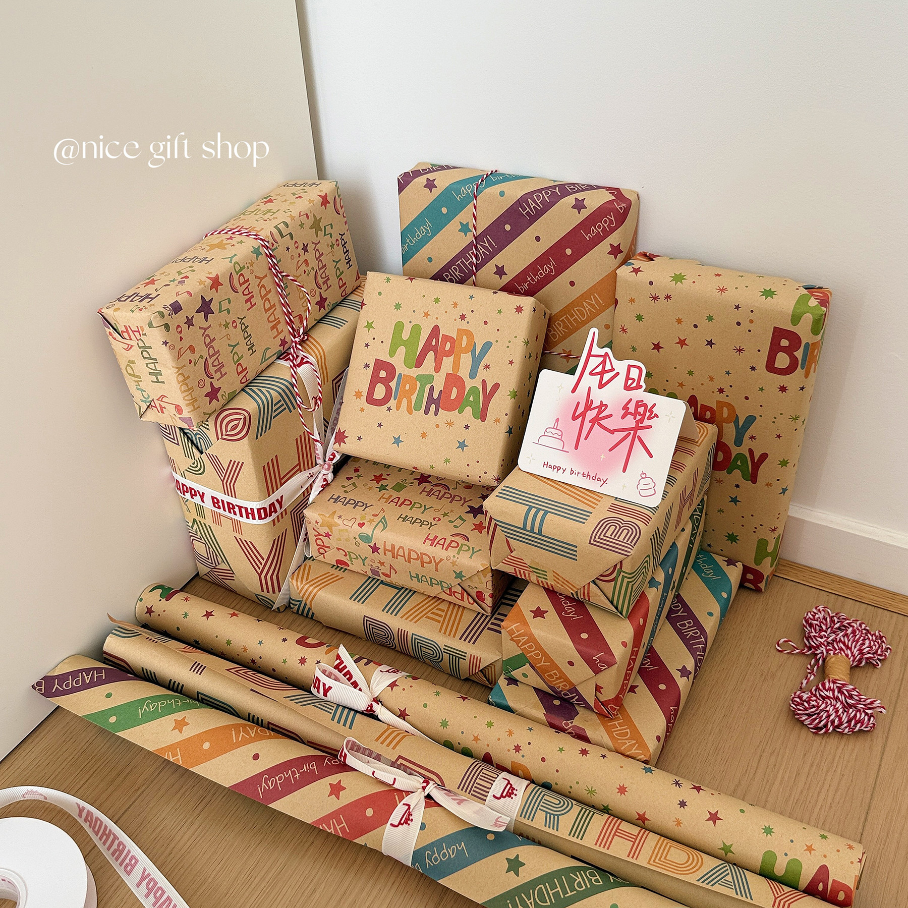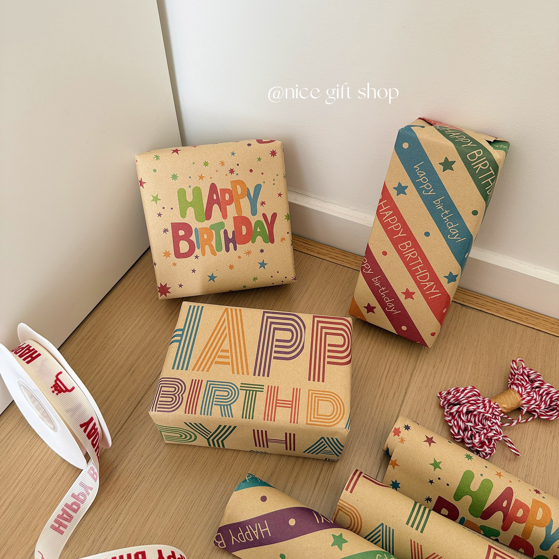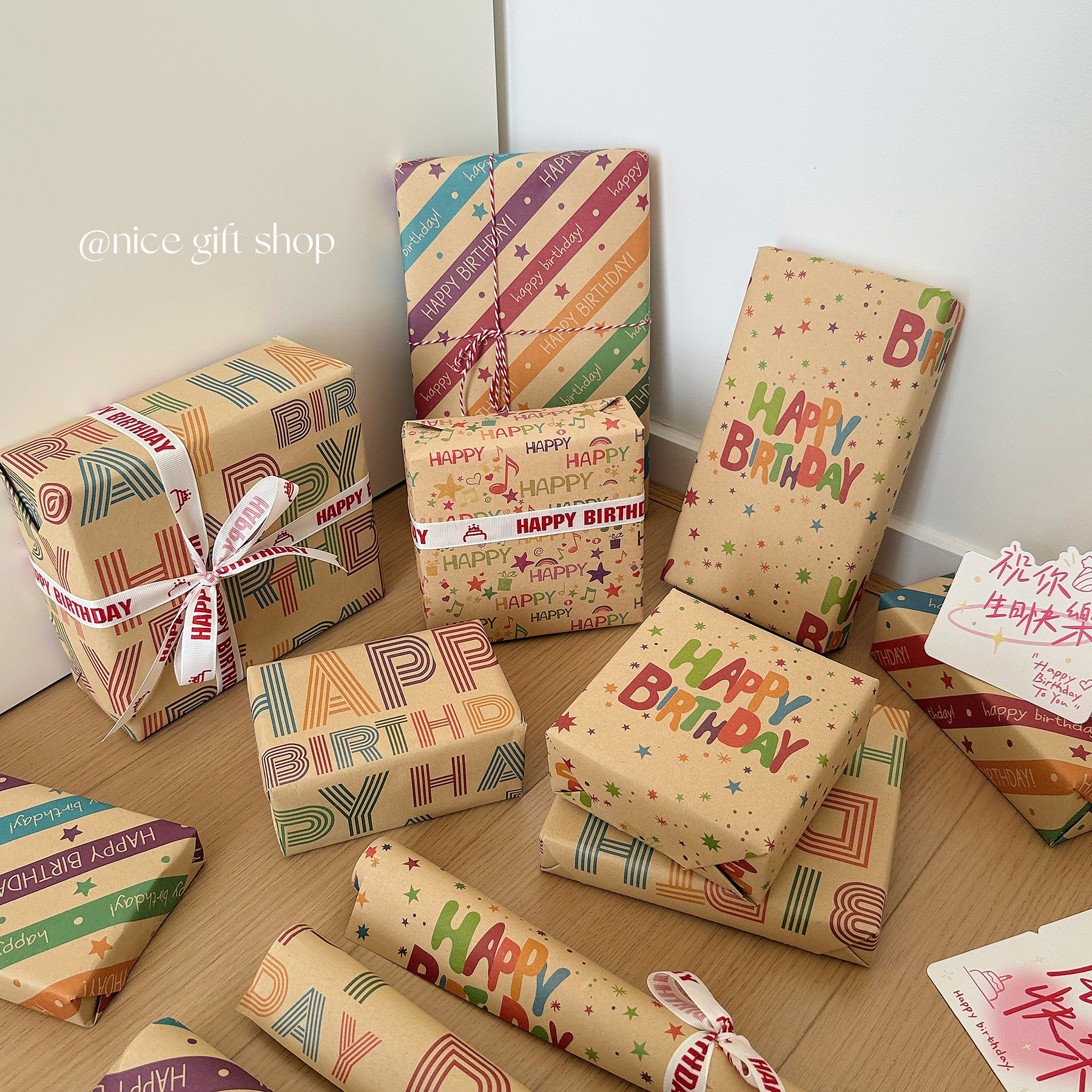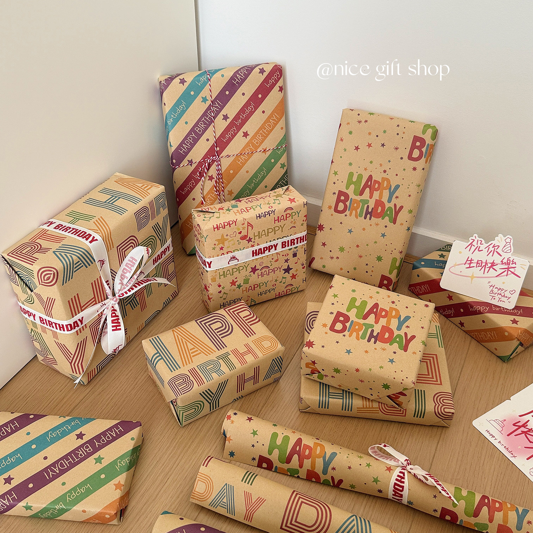 祝你生日快乐~复古生日礼物包装纸大尺寸牛皮纸节日礼品装饰纸ins