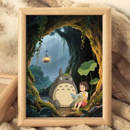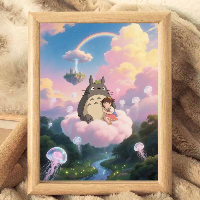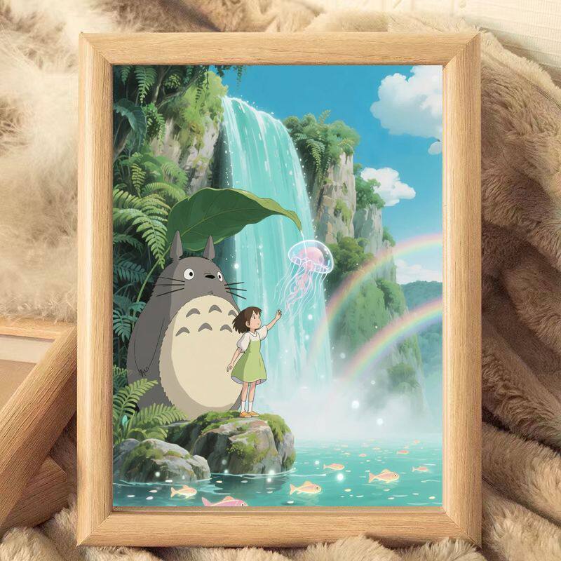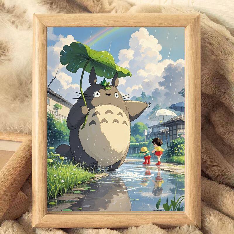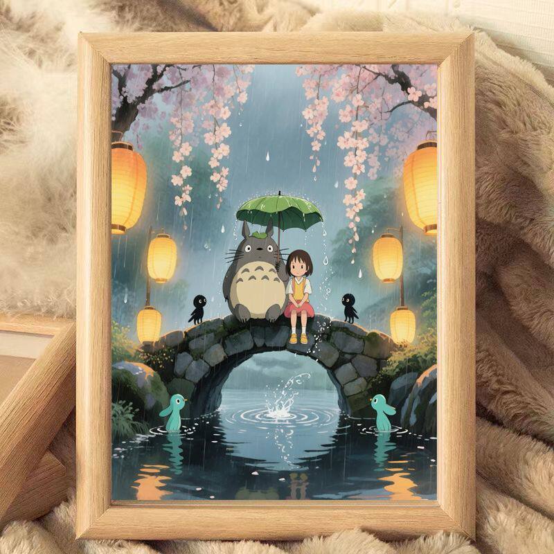 宫崎骏龙猫治愈系装饰画日系动漫原木相框画卧室桌面摆台礼物