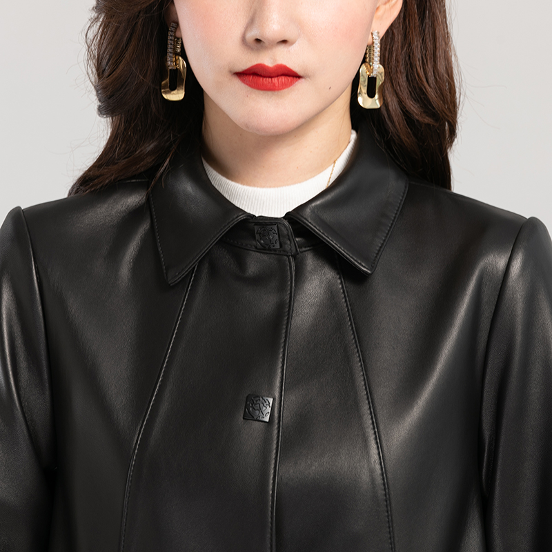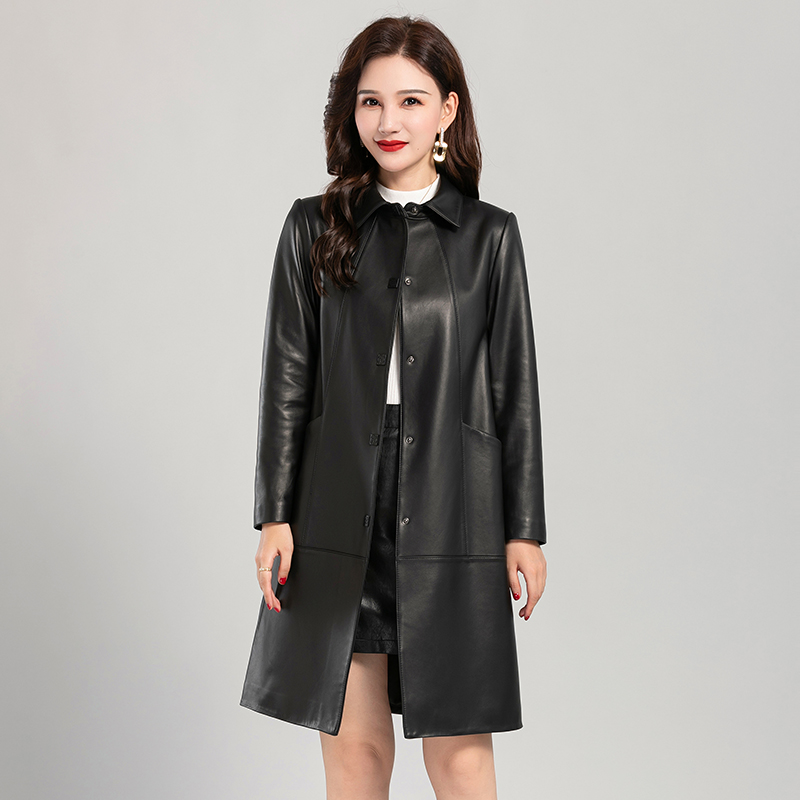 2025年秋冬新款女休闲绵羊皮风衣海宁显瘦妈妈单穿中长款真皮外套