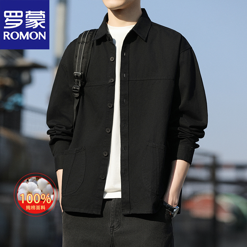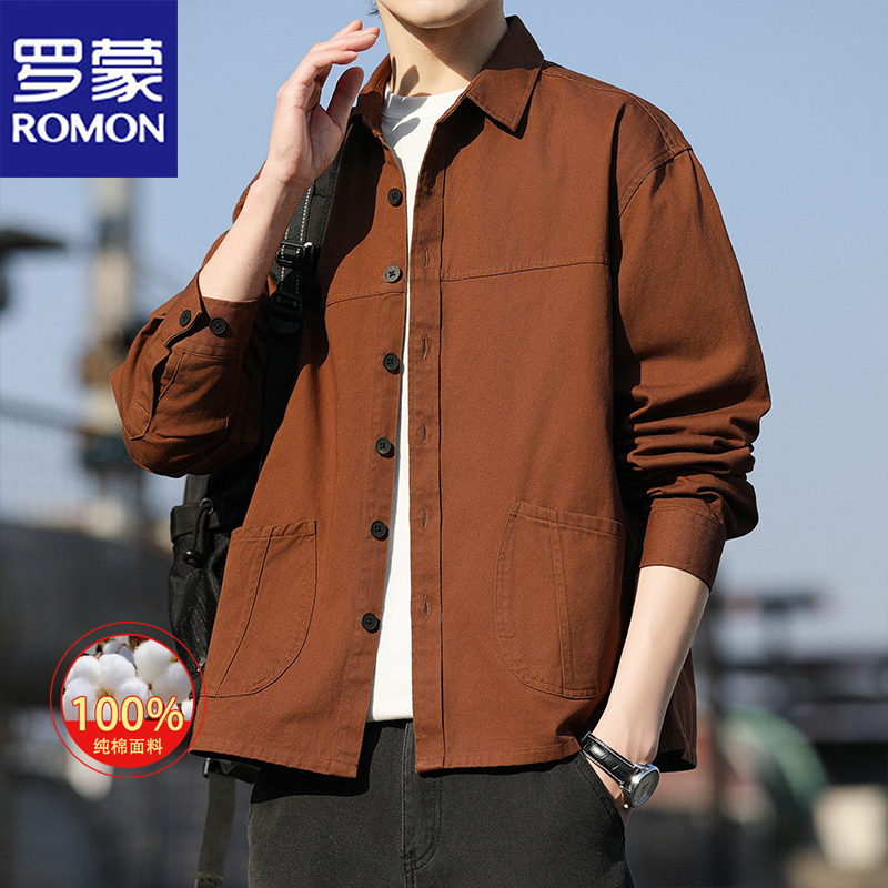 罗蒙春秋纯棉男士外套百搭衬衫男