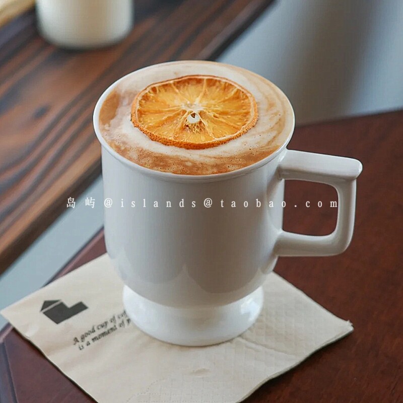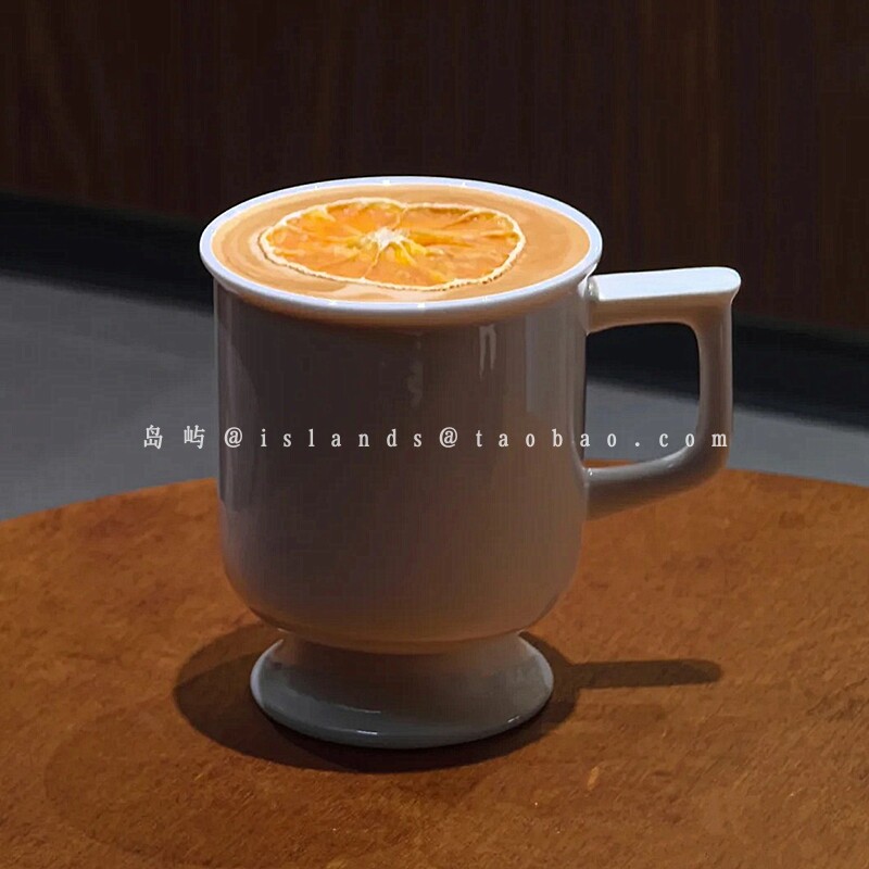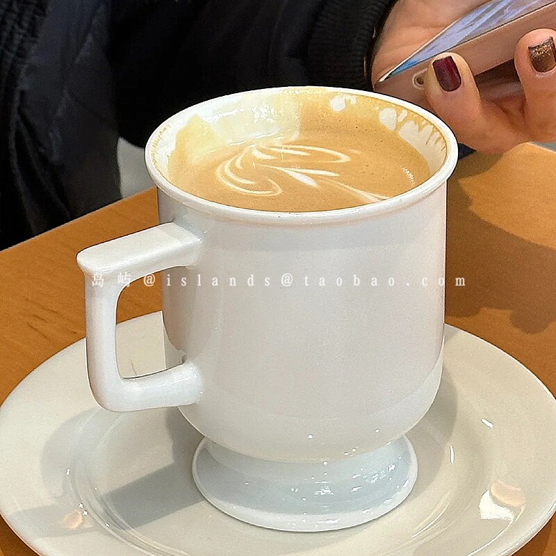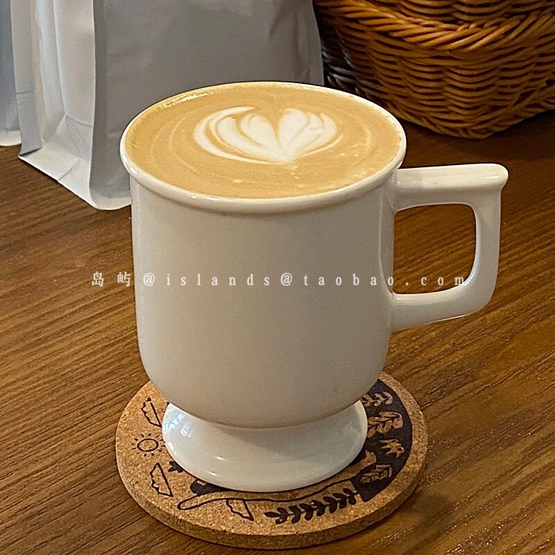 复古高脚陶瓷杯法式简约咖啡馆下午茶纯色热拿铁拉花杯咖啡马克杯