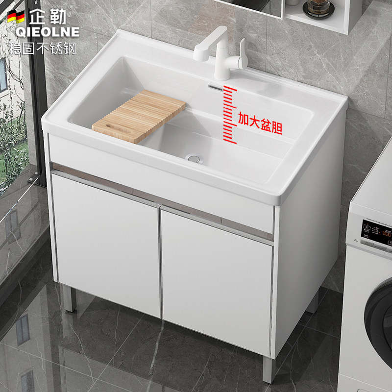 阳台洗衣池陶瓷一体台盆大号洗手盆户外不锈钢洗衣柜带搓衣板水槽