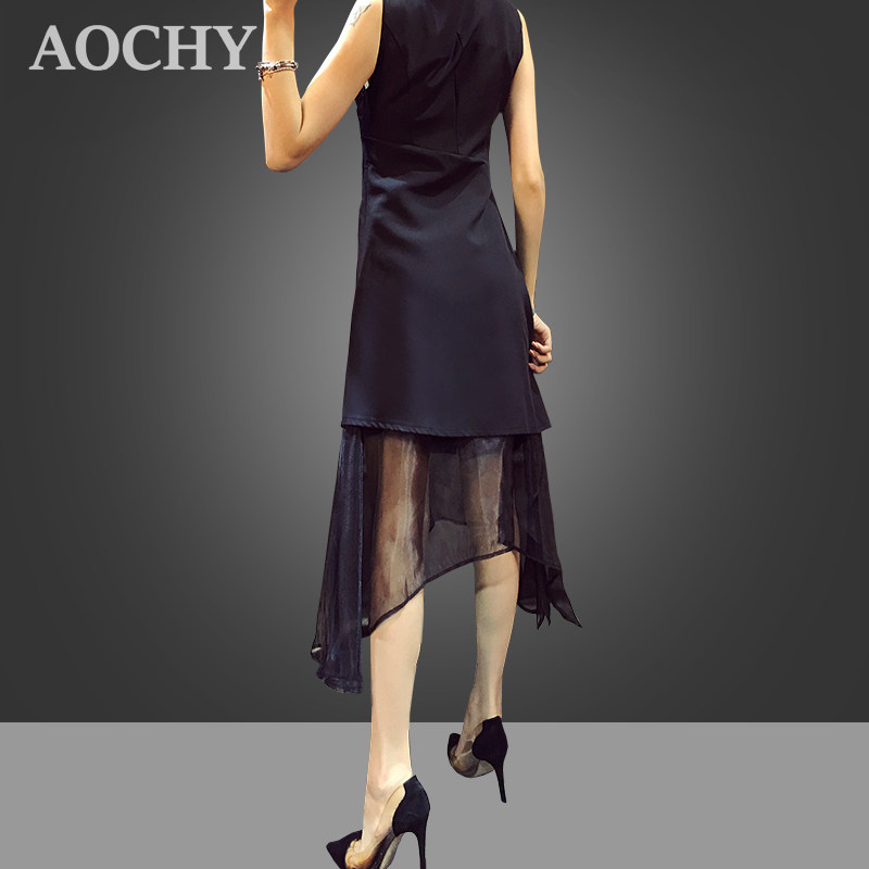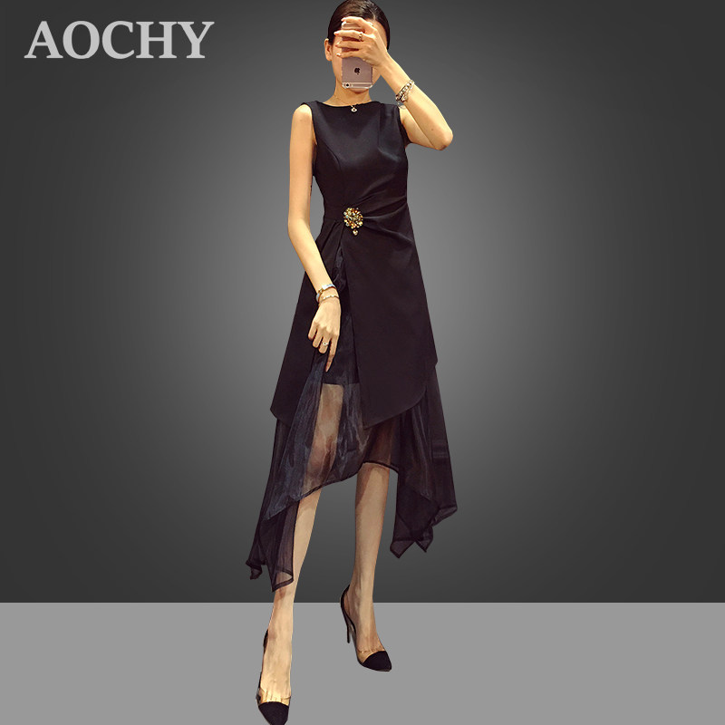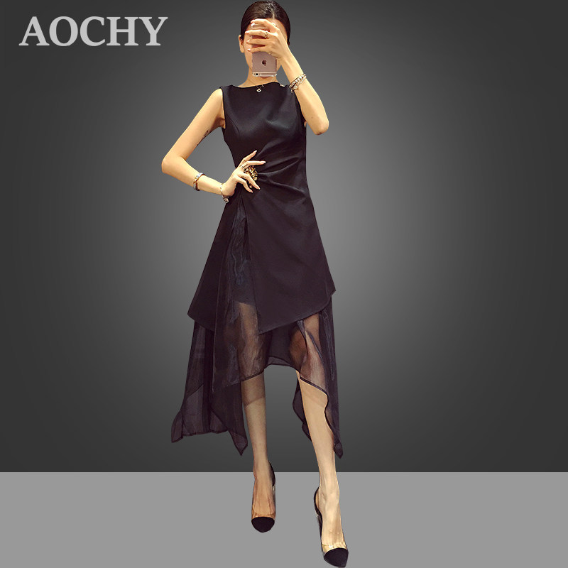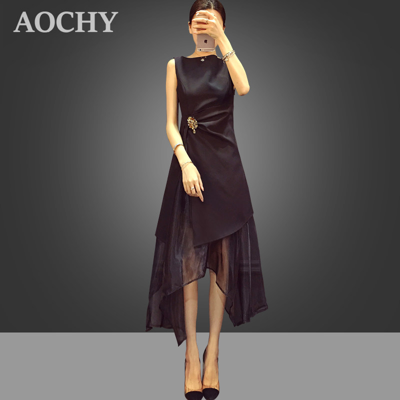 高定轻奢优雅气质不规则欧根纱连衣裙无袖修身礼服女夏季2025新款