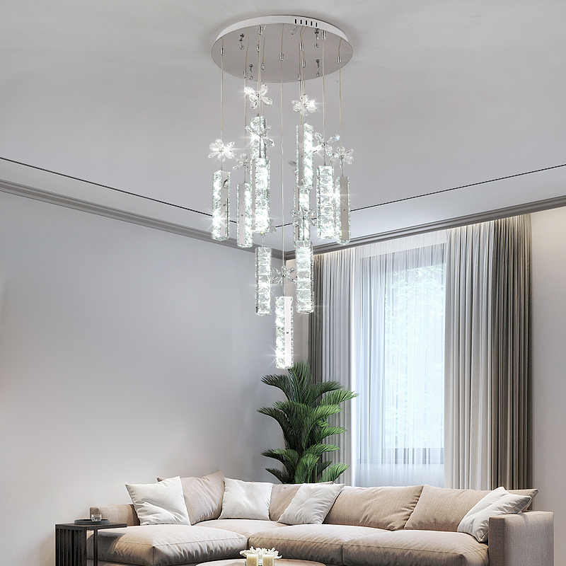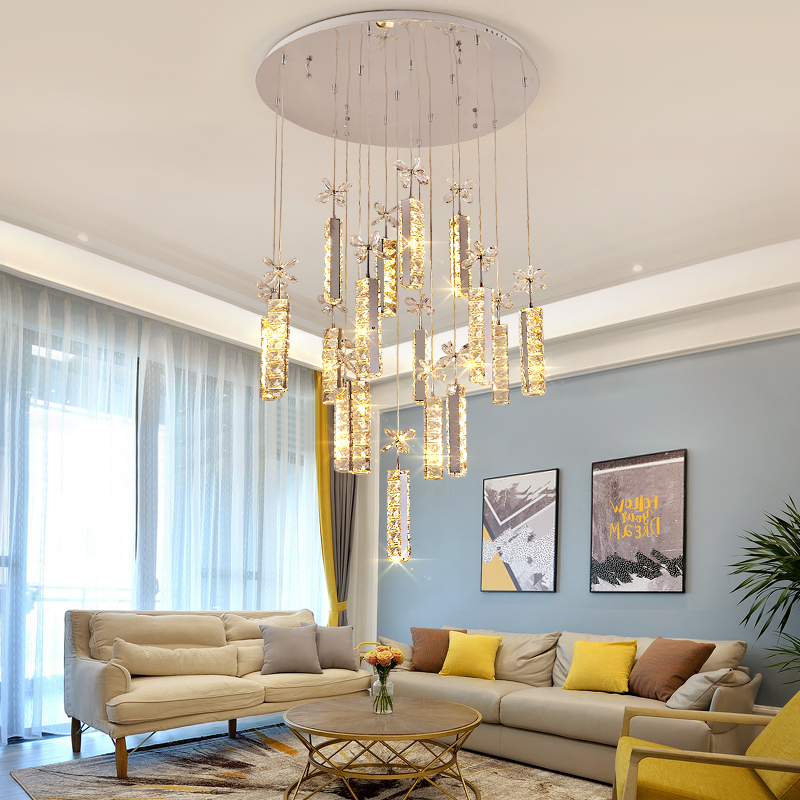 高档大气轻奢饭厅k吊灯简约现代客厅灯饭厅水晶灯吧台餐桌楼梯灯