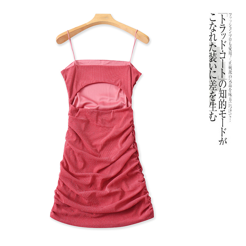 亮丝吊带裙 夏新外贸女装时尚可调节性感露背褶皱包臀连衣裙31327