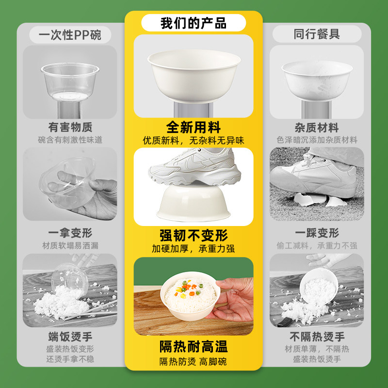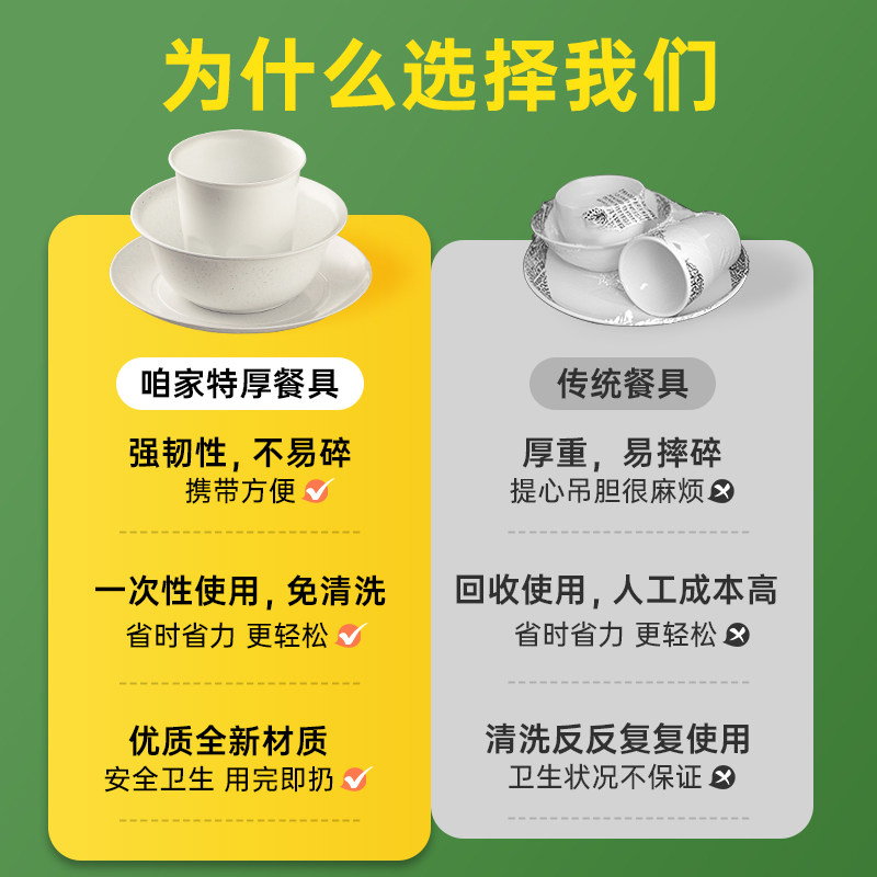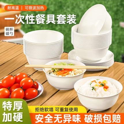 一次性餐具饭碗食品级家用加厚加硬碗筷杯碟勺盘子户外三件套套装